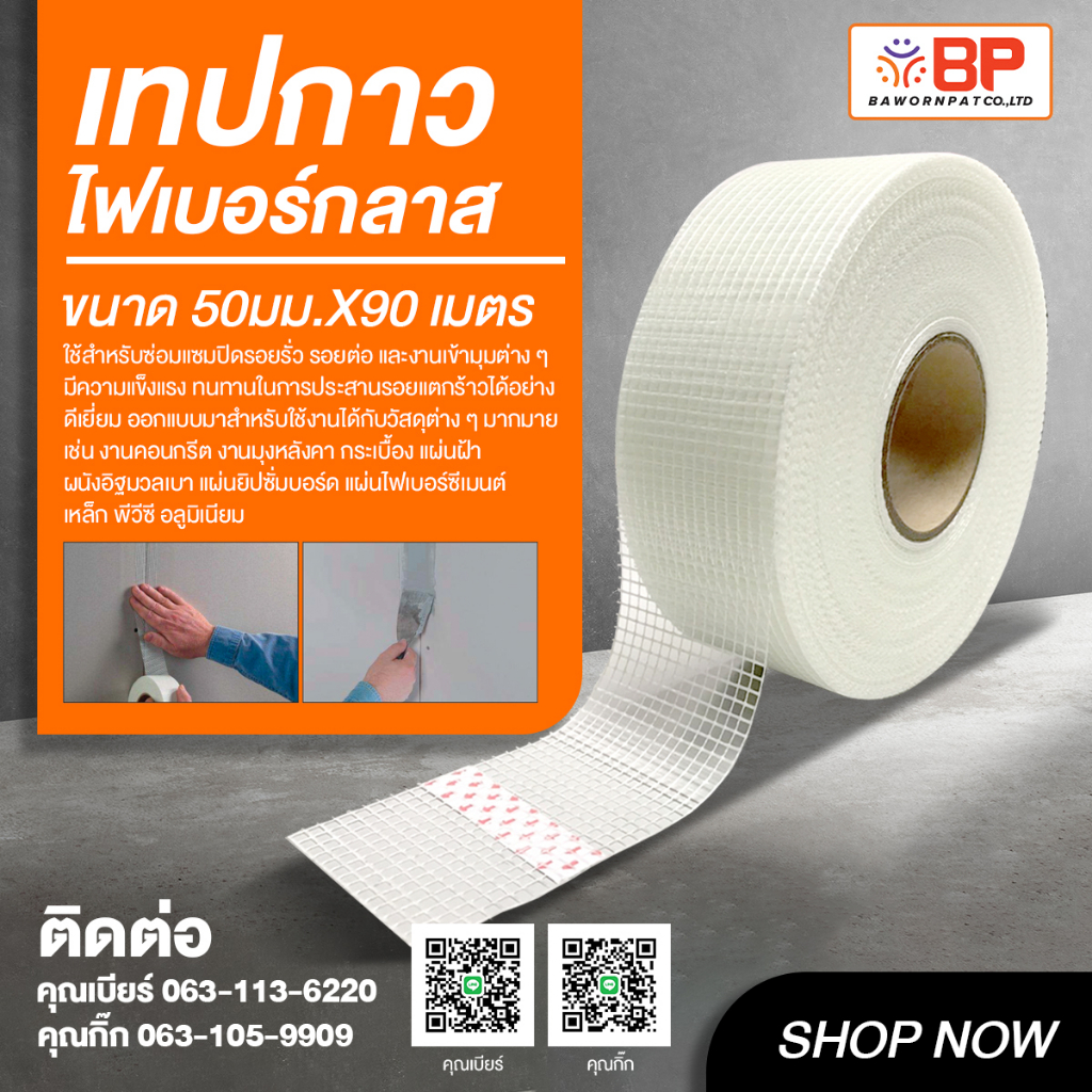 เทปกาวตาข่ายไฟเบอร์ เทปกาวไฟเบอร์กลาส เทปตาข่ายไฟเบอร์มีกาวในตัว FIBERGLASS MESH TAPE ขนาด 50มม.X50เมตร และ 50มม.X90เมตร