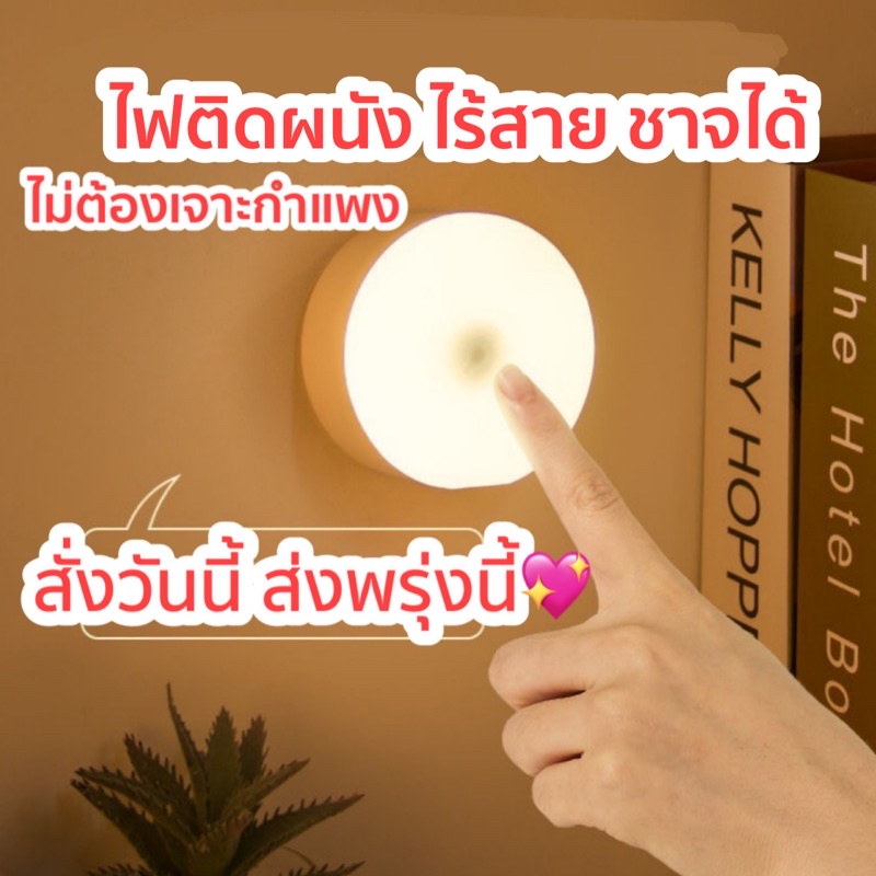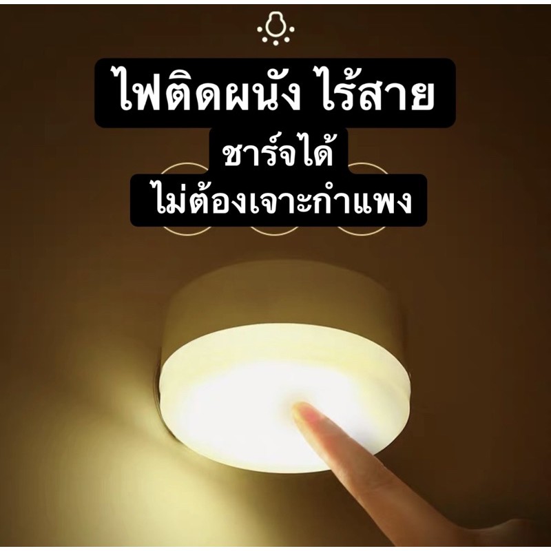 พร้อมส่งจากไทย🔥 โคมไฟไร้สาย ชาร์จไฟจาก usb ไฟติดตู้เสื้อผ้า โคมไฟกลม โคมไฟแบบชาร์จ โคมไฟติดผนัง ไม่ต้องเจาะ Happa.bkk