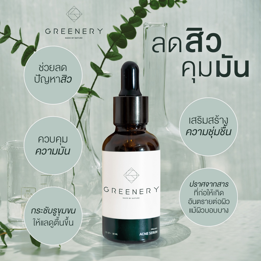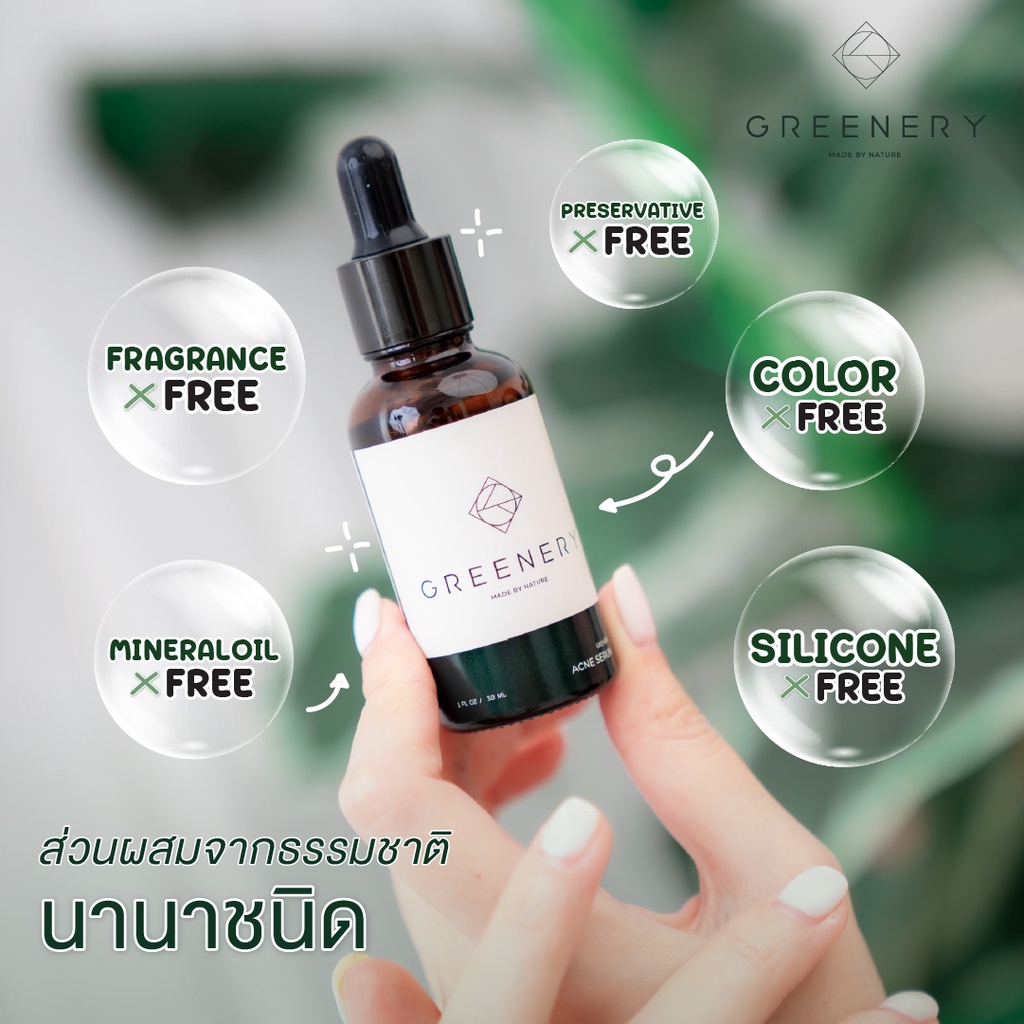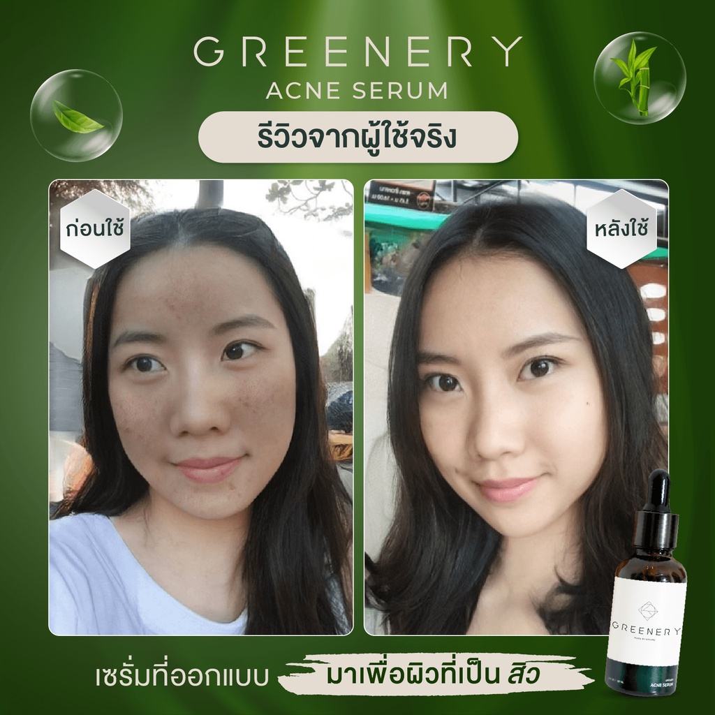 Greenery Acne Serum กรีนเนอรี่ แอคเน่ เซรั่ม [30 ml./ขวด] เซรั่มสิว ส่วนผสมจากธรรมชาติ น้ำเยื่อไผ่ Tea Tree Oil