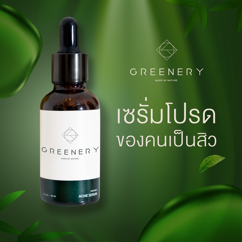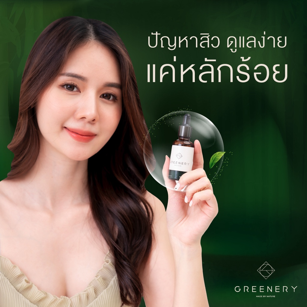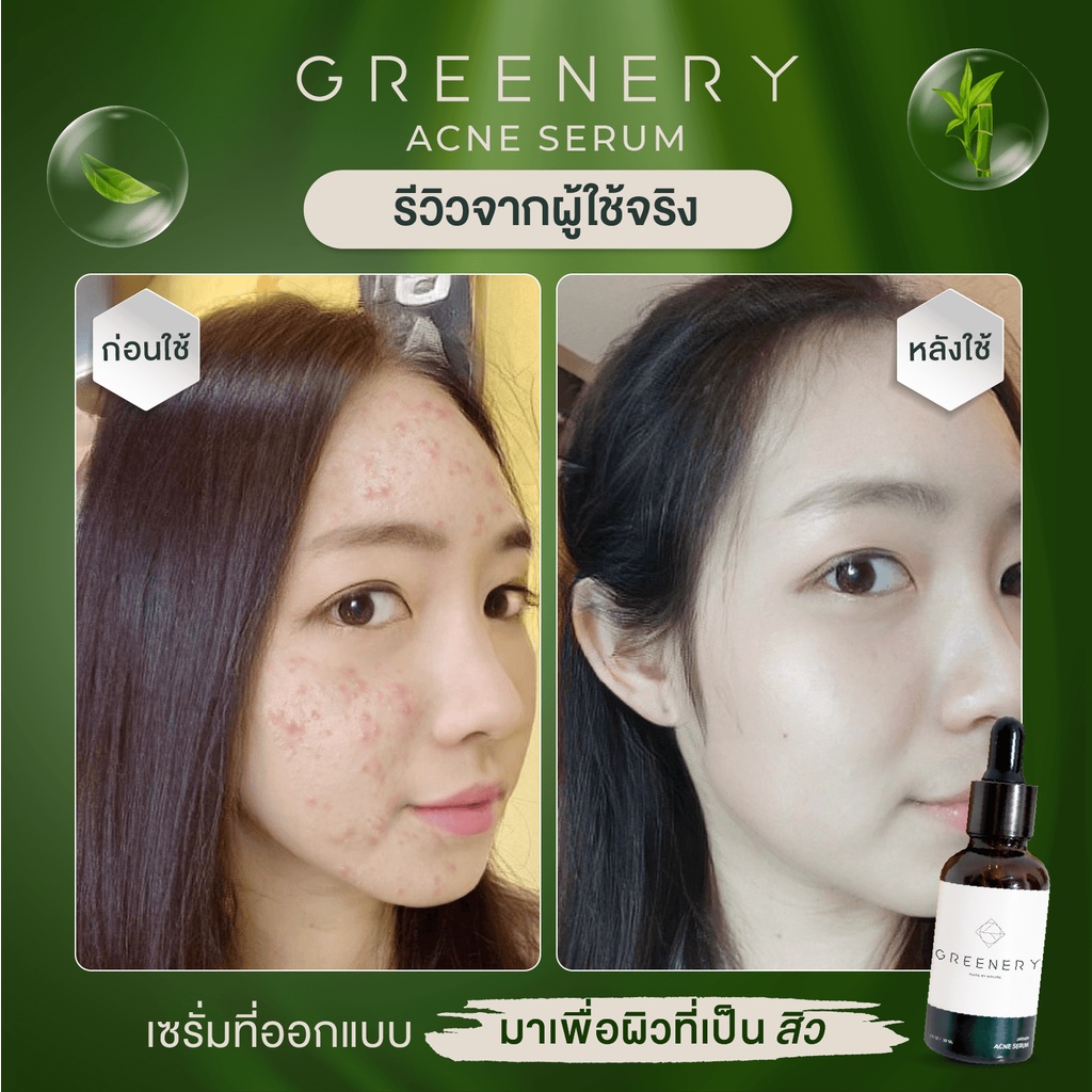 Greenery Acne Serum กรีนเนอรี่ แอคเน่ เซรั่ม [30 ml./ขวด] เซรั่มสิว ส่วนผสมจากธรรมชาติ น้ำเยื่อไผ่ Tea Tree Oil