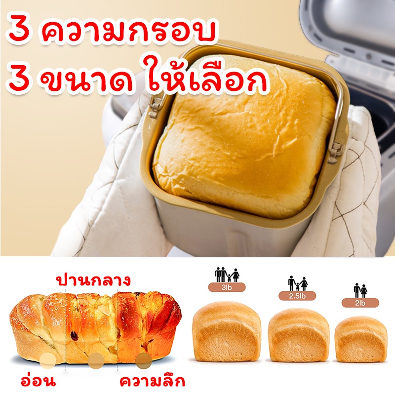 🎁 เครื่องทำขนมปังอัตโนมัติ LAHOME เครื่องทำขนมปัง 2LB เครื่องหลายความจุขนาดใหญ่อัตโนมัติดิจิตอลแป้งไร้กลูเตน, โยเกิร์ต
