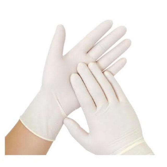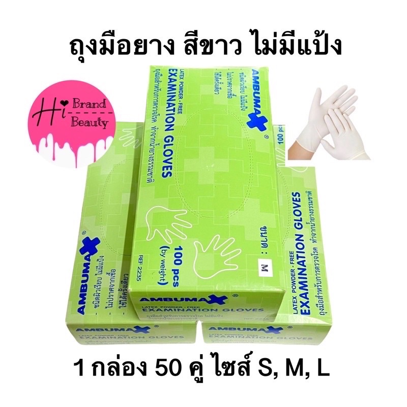 ( 2คู่, 5คู่ ) ถุงมือยาง สีขาว ไม่มีแป้ง เหนียวยืดหยุ่น มีไซส์ S, M, L
