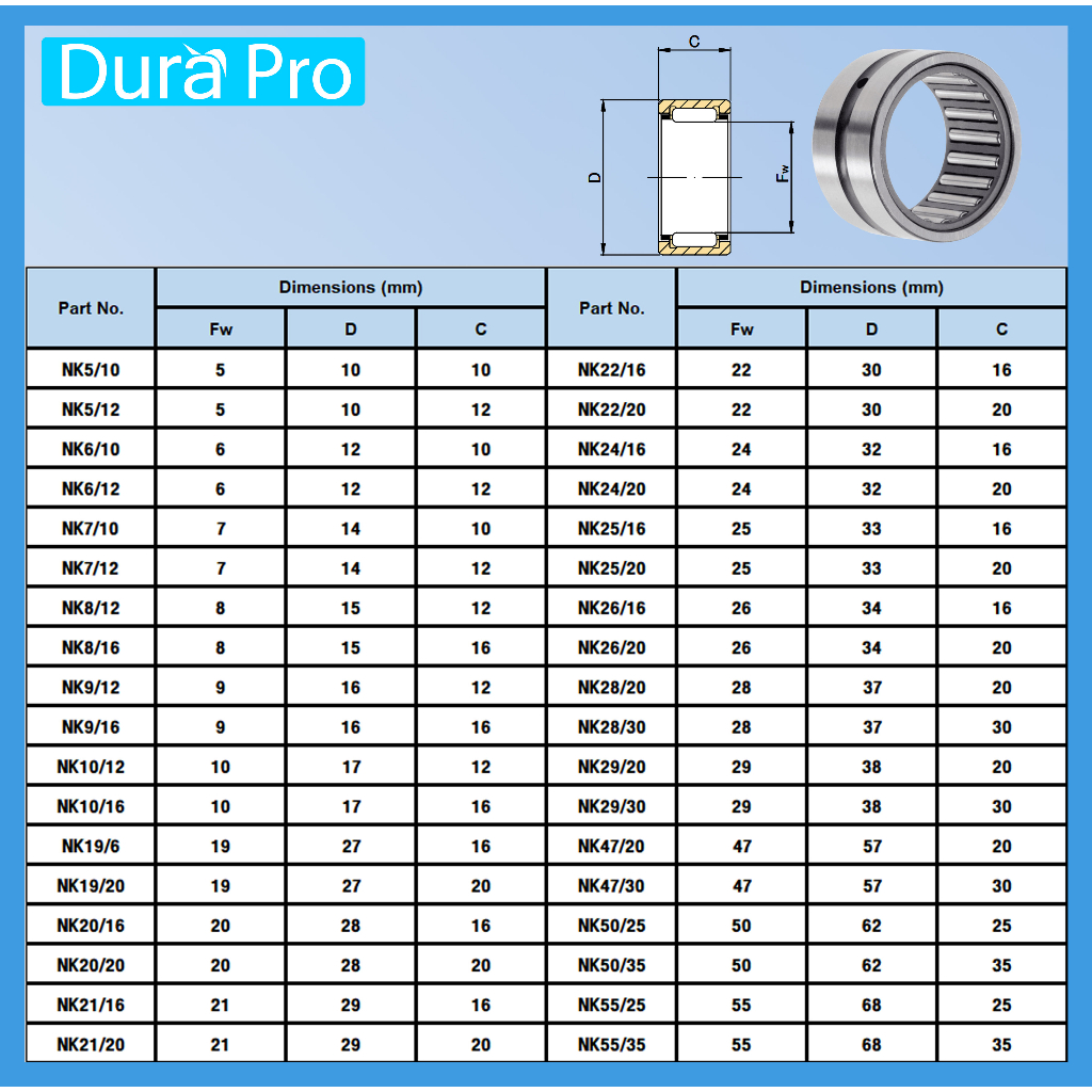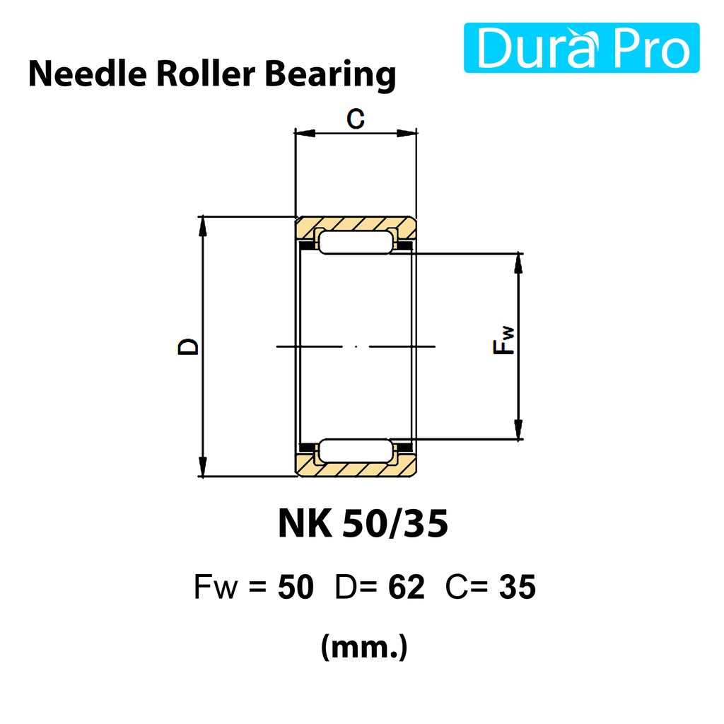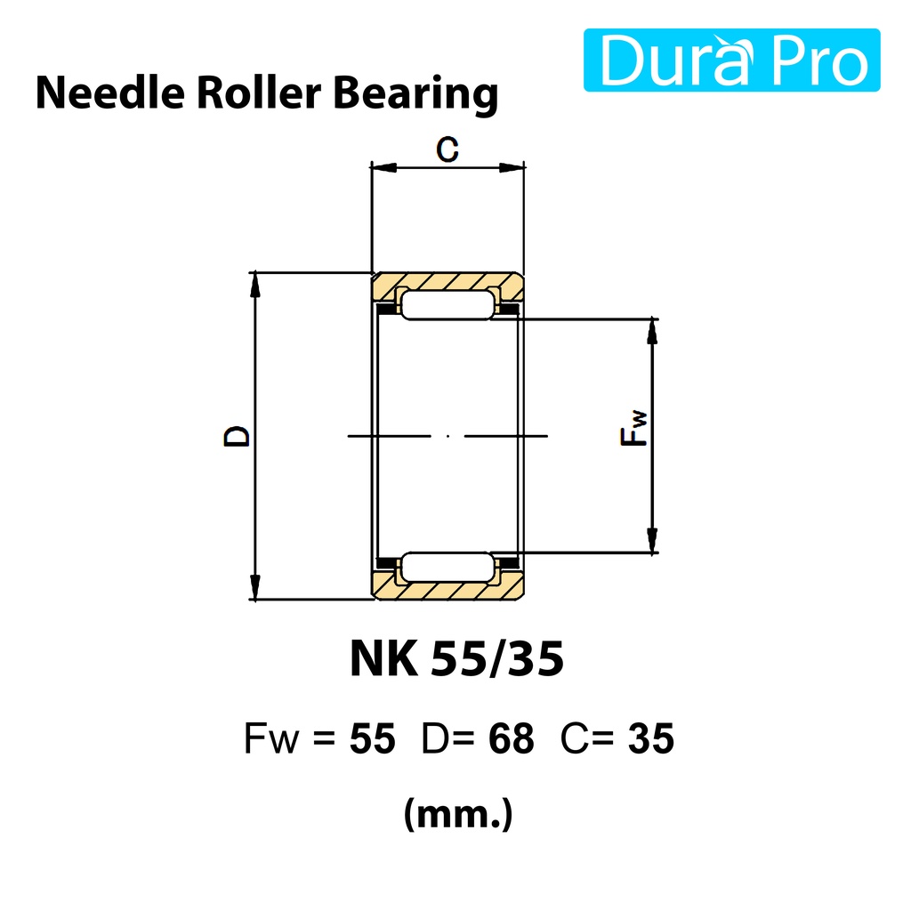 NK47/20 NK47/30 NK50/25 NK50/35 NK55/25 NK55/35 ตลับลูกปืนเม็ดเข็ม NK ( Needle Roller Bearing ) โดย Dura Pro