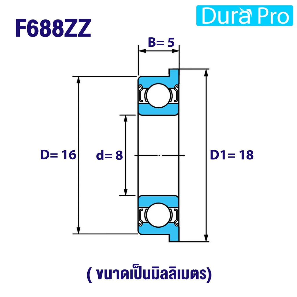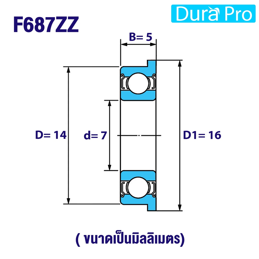 F686ZZ F687ZZ F688ZZ F689ZZ ตลับลูกปืนหน้าแปลนขนาดเล็ก ฝาเหล็ก 2 ข้าง ( MINIATURE BEARING ) โดย Dura Pro