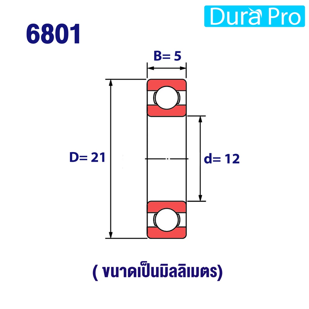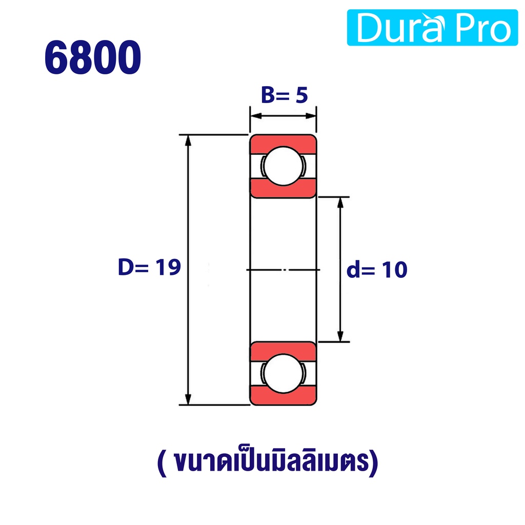 6800 6801 6802 6803 6804 6805 open ตลับลูกปืนเม็ดกลมร่องลึก แบบไม่มีฝา ( Deep groove ball bearings ) โดย Dura Pro