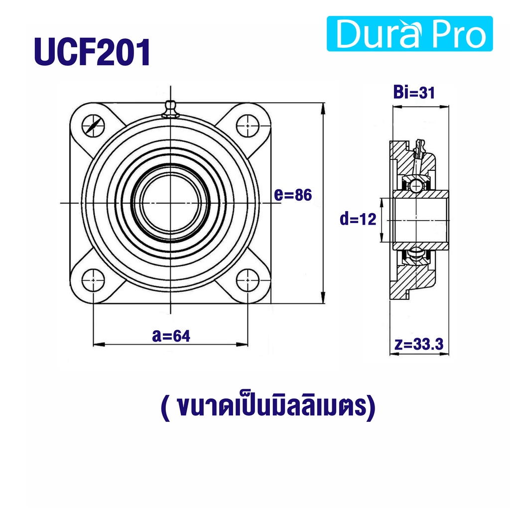 UCF201 UCF201-8 UCF202-10 UCF202 UCF203 ตลับลูกปืนตุ๊กตา BEARING UNITS UCF201 - UCF203 ( UC + F = UCF ) โดย Dura Pro