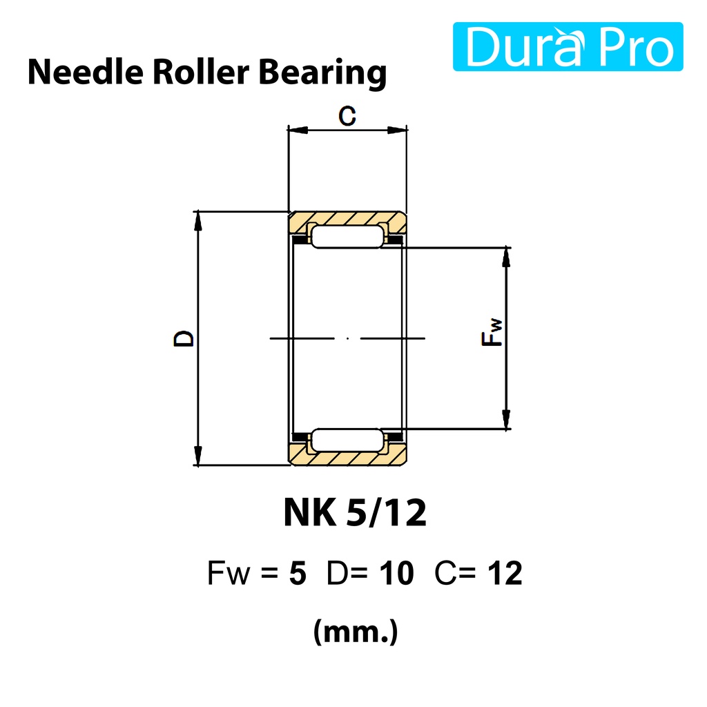 NK5/10 NK5/12 NK6/10 NK6/12 NK7/10 NK7/12 ตลับลูกปืนเม็ดเข็ม NK ( Needle Roller Bearing ) โดย Dura Pro