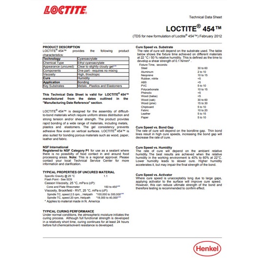 LOCTITE 454 Instant Adhesives ( ล็อคไทท์ ) กาวแห้งเร็ว กาวอเนกประสงค์ เนื้อเจล การยึดติดที่รวดเร็ว ขนาด 20 g. LOCTITE454