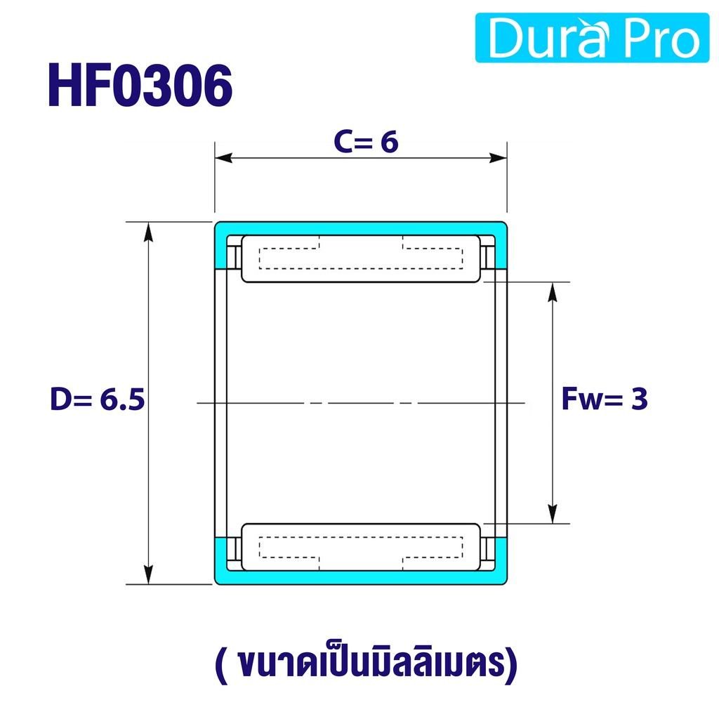 HF0306 HF0406 HF0608 HF0612 HF0809 HF0812 HF081412 ตลับลูกปืนเม็ดเข็ม ( NEEDLE ROLLER BEARINGS , ONE WAY BEARING )