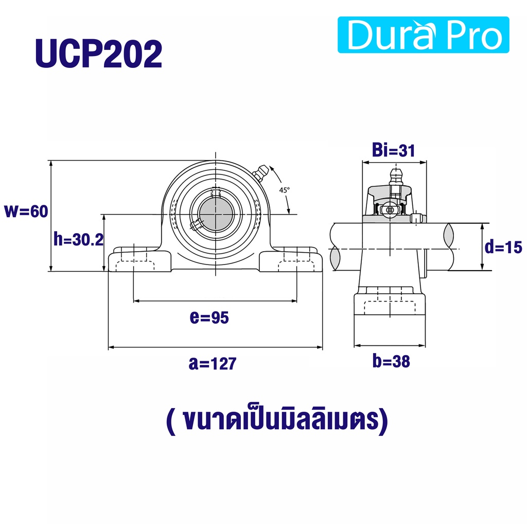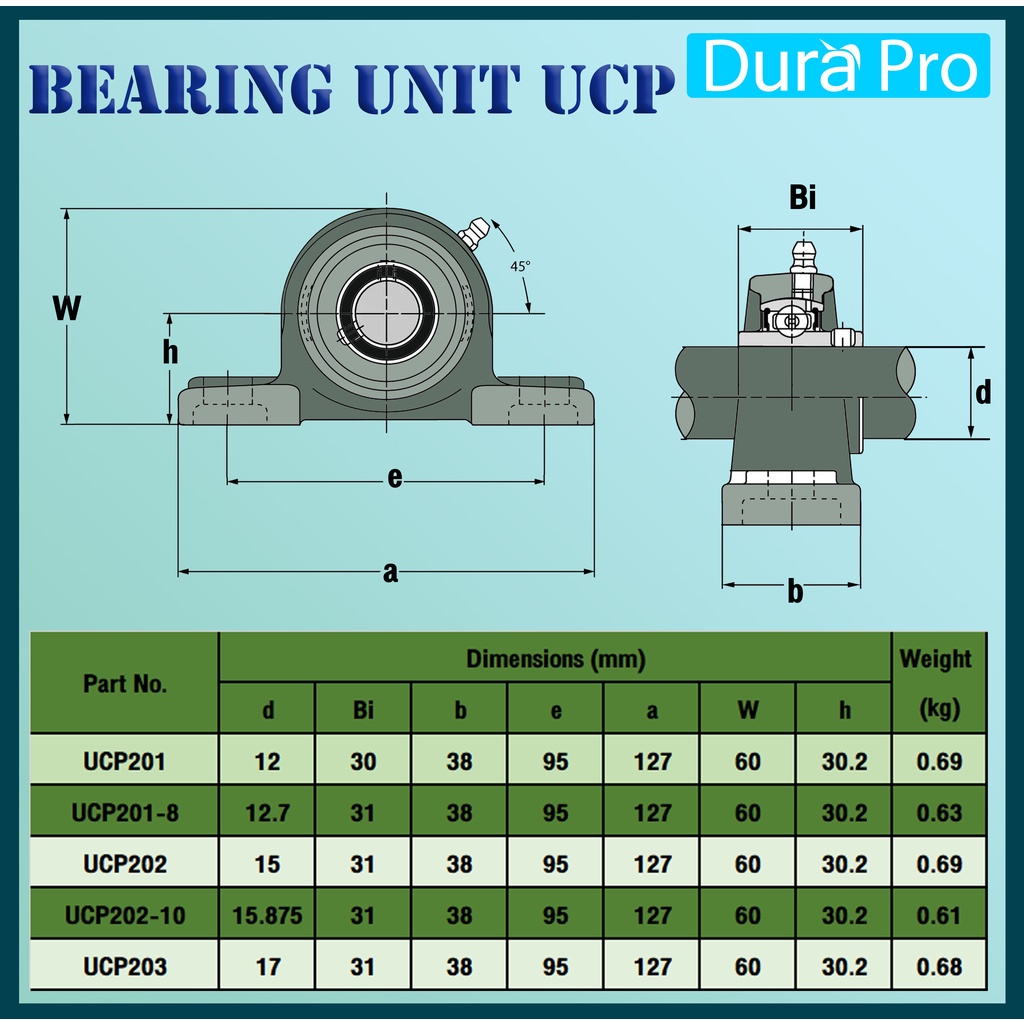 UCP201 UCP201-8 UCP202 UCP202-10 UCP203 ตลับลูกปืนสำหรับ BEARING UNITS UCP201 - UCP203 ( UC + P = UCP ) โดย Dura Pro