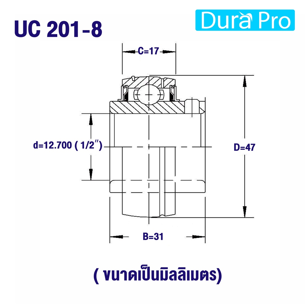 UC201-8 UC202-10 UC204-12 UC205-16 UC206-18 ตลับลูกปืนตุ๊กตา ( Bearing Units ) เพลานิ้ว UCP UCF UCFL UC โดย Dura Pro
