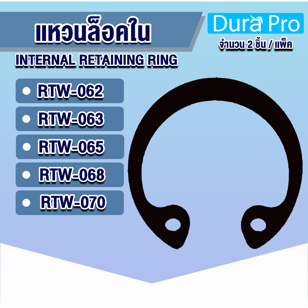 แหวนล็อคใน แหวนล็อค เบอร์ RTW62 RTW63 RTW65 RTW68 RTW70 จำนวน 2 ชิ้น/แพ็ค (Internal Retaining Ring) โดย Dura Pro