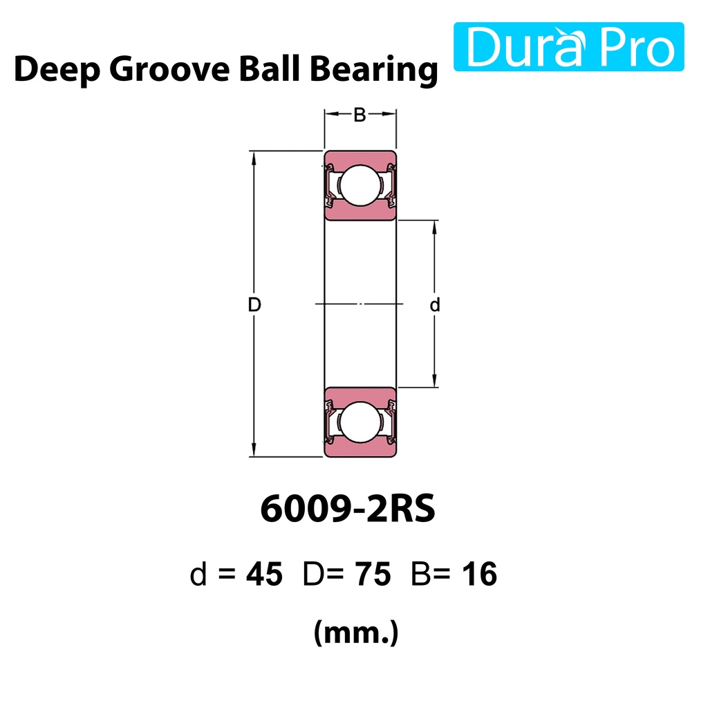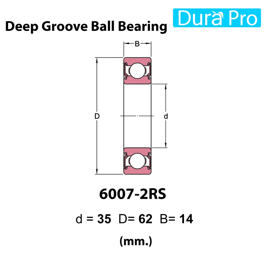 6007-2RS 6008-2RS 6009-2RS 6010-2RS 6011-2RS 6012-2RS ตลับลูกปืนเม็ดกลม ฝายาง FAG Deep Groove Ball Bearing โดย Dura Pro