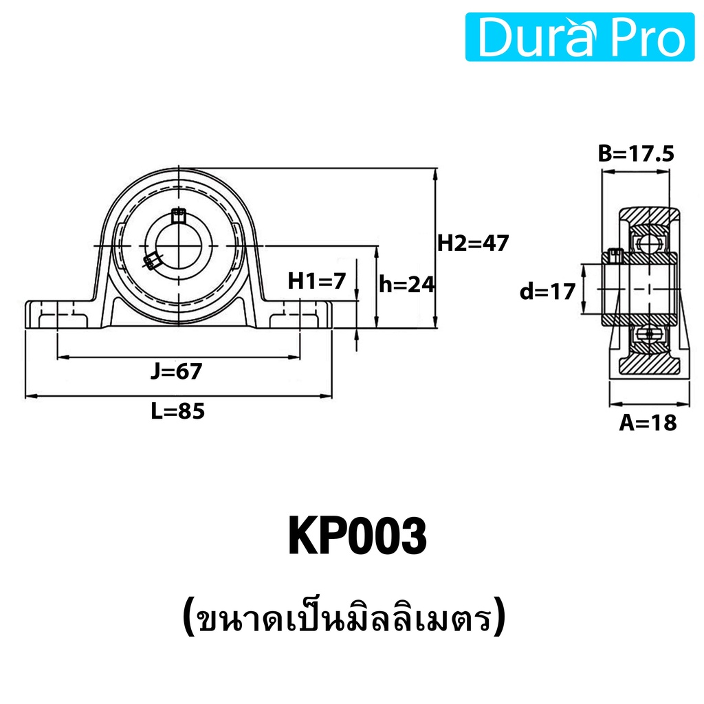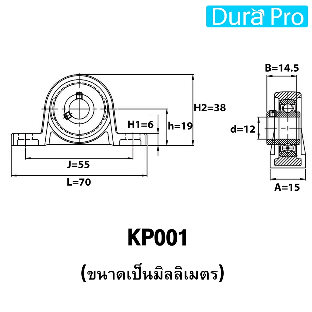 KP08 KP000 KP001 KP002 KP003 KP004 KP005 KP006 ตลับลูกปืนตุ๊กตา ( Miniature Bearing Unit KP) KP08 - KP006 โดย Dura Pro