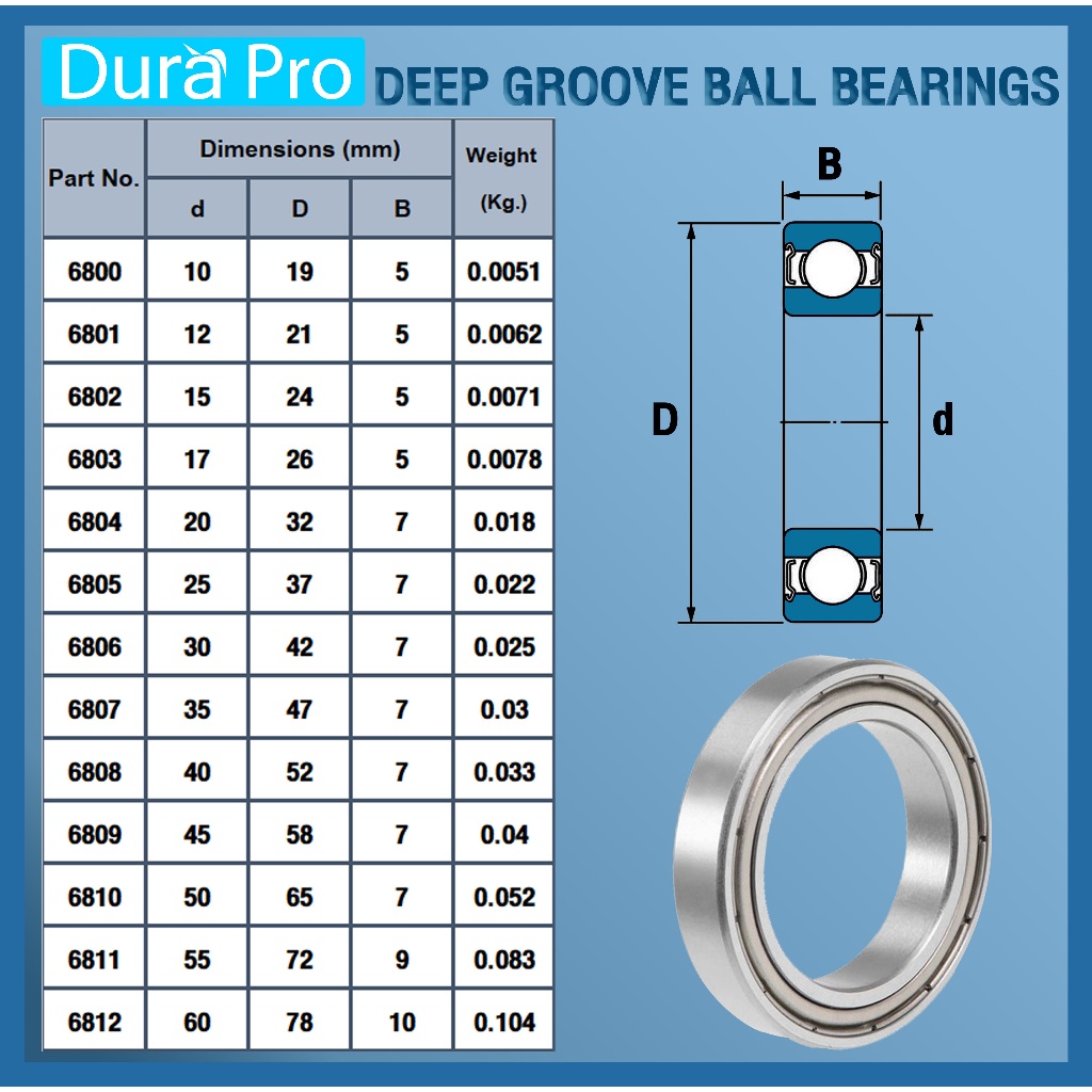 6800ZZ 6801ZZ 6802ZZ 6803ZZ 6804ZZ 6805ZZ NTN ตลับลูกปืนเม็ดกลมร่องลึก ฝาเหล็ก ( DEEP GROOVE BALL BEARINGS ) โดยDura Pro