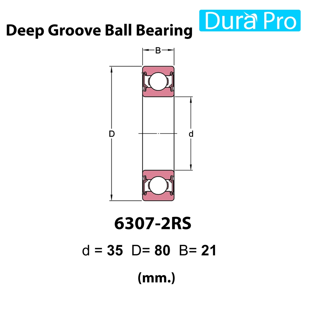6306-2RS 6307-2RS 6308-2RS 6309-2RS 6310-2RS 2RSR ตลับลูกปืนเม็ดกลม ฝายาง FAG (Deep Groove Ball Bearing) โดย Dura Pro