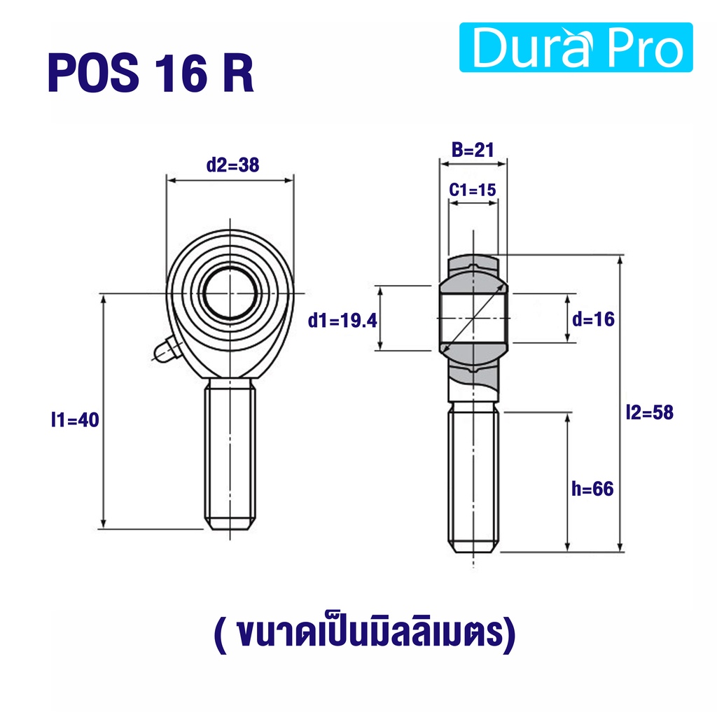 POS16L POS18L POS20L POS22L POS25L ลูกปืนตาเหลือก เกลียวตัวผู้ซ้าย ลูกหมากคันชัก POS16 POS18 POS20 POS22 POS25 โดย Dura