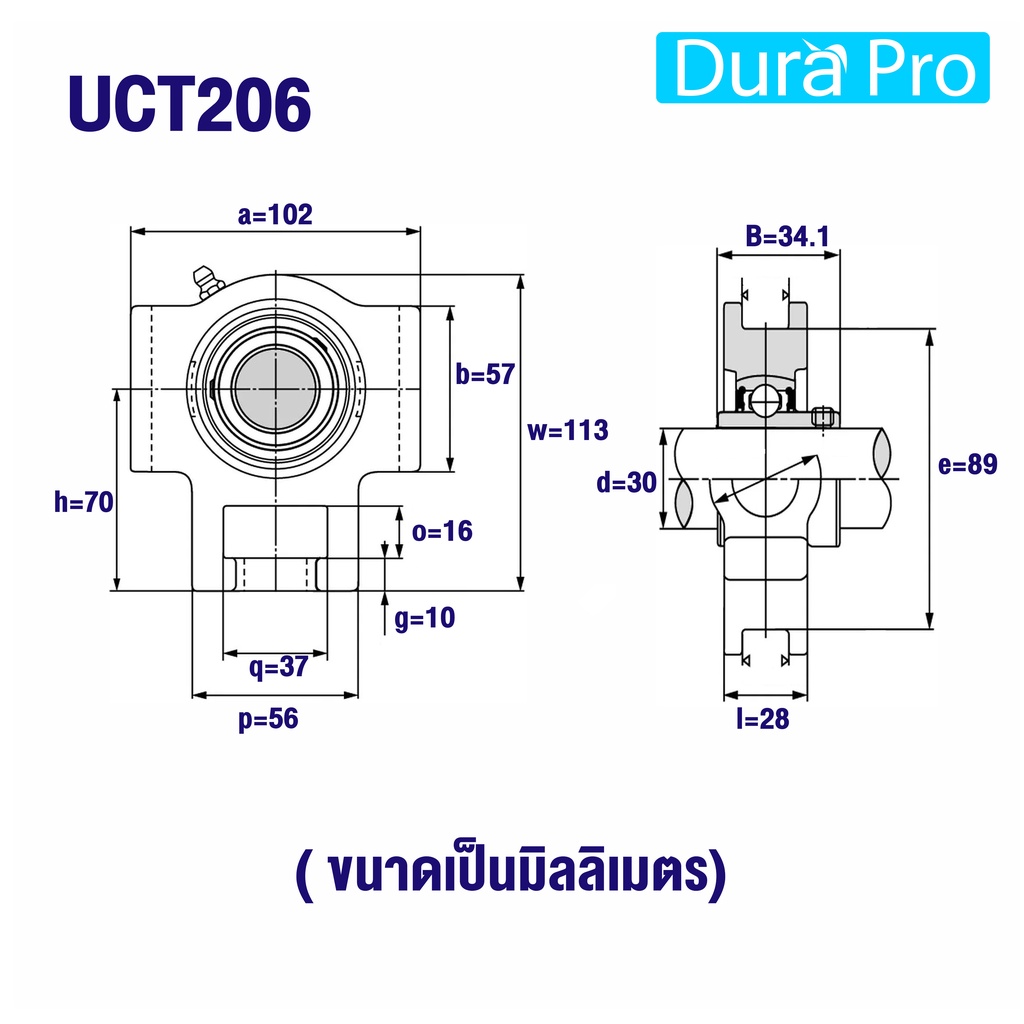 UCT204 UCT205 UCT206 UCT207 UCT208 ตลับลูกปืนตุ๊กตา BEARING UNITS ตลับลูกปืนสำหรับเพลามิล UCT204 - UCT208 โดย Dura Pro