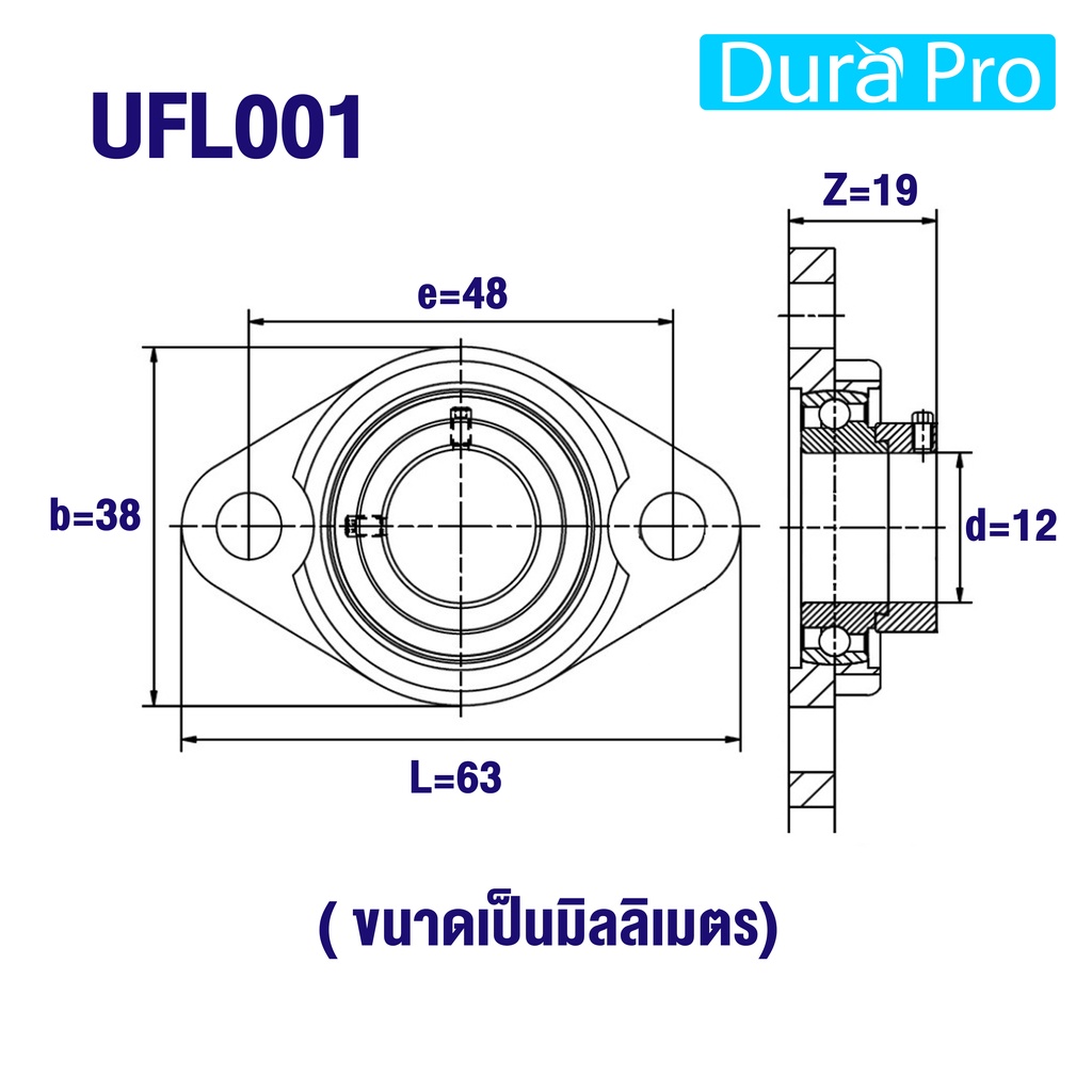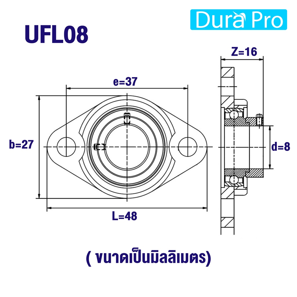 UFL08 UFL000 UFL001 UFL002 ตลับลูกปืนตุ๊กตา UFL ( BEARING UNITS UFL ) U + FL = UFL โดย Dura Pro