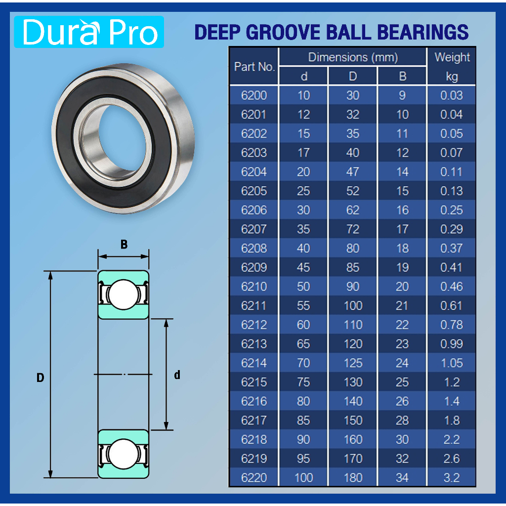 6200-2RS 6201-2RS 6202-2RS 6203-2RS 6204-2RS 6205-2RS RS ตลับลูกปืนเม็ด (ฝายาง 2 ข้าง) ( Deep groove ball bearings )