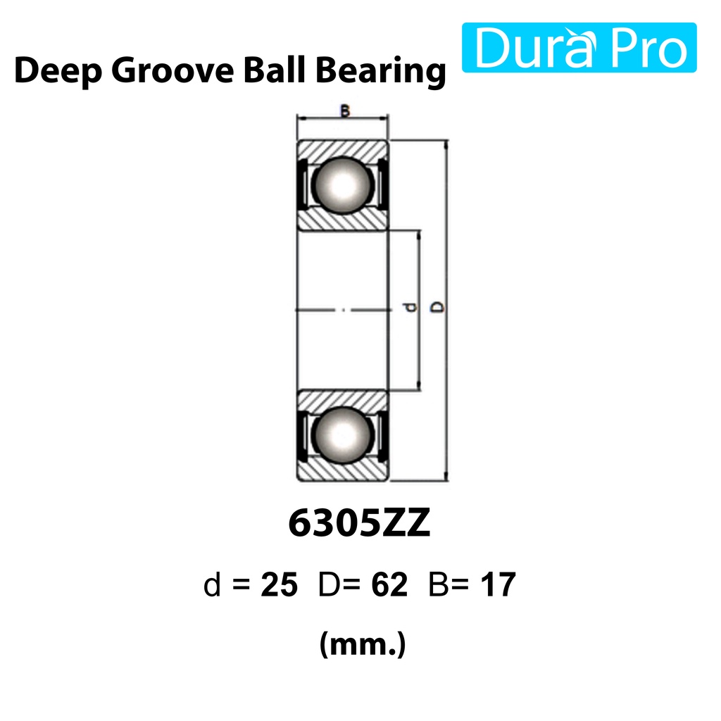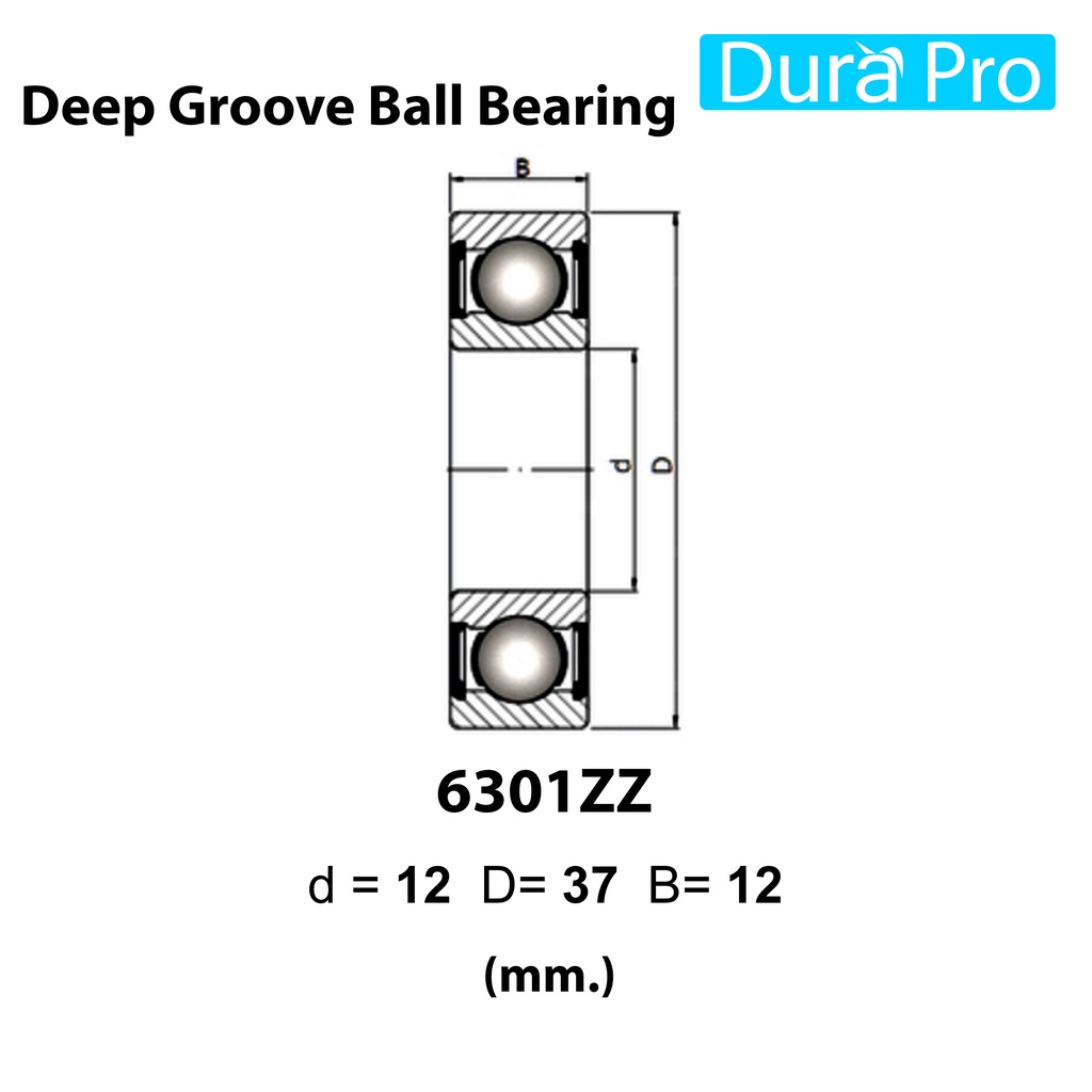 6301ZZ 6302ZZ 6303ZZ 6304ZZ 6305ZZ 2ZR ตลับลูกปืนเม็ดกลมร่องลึก ฝาเหล็ก FAG (Deep Groove Ball Bearing) โดย Dura Pro