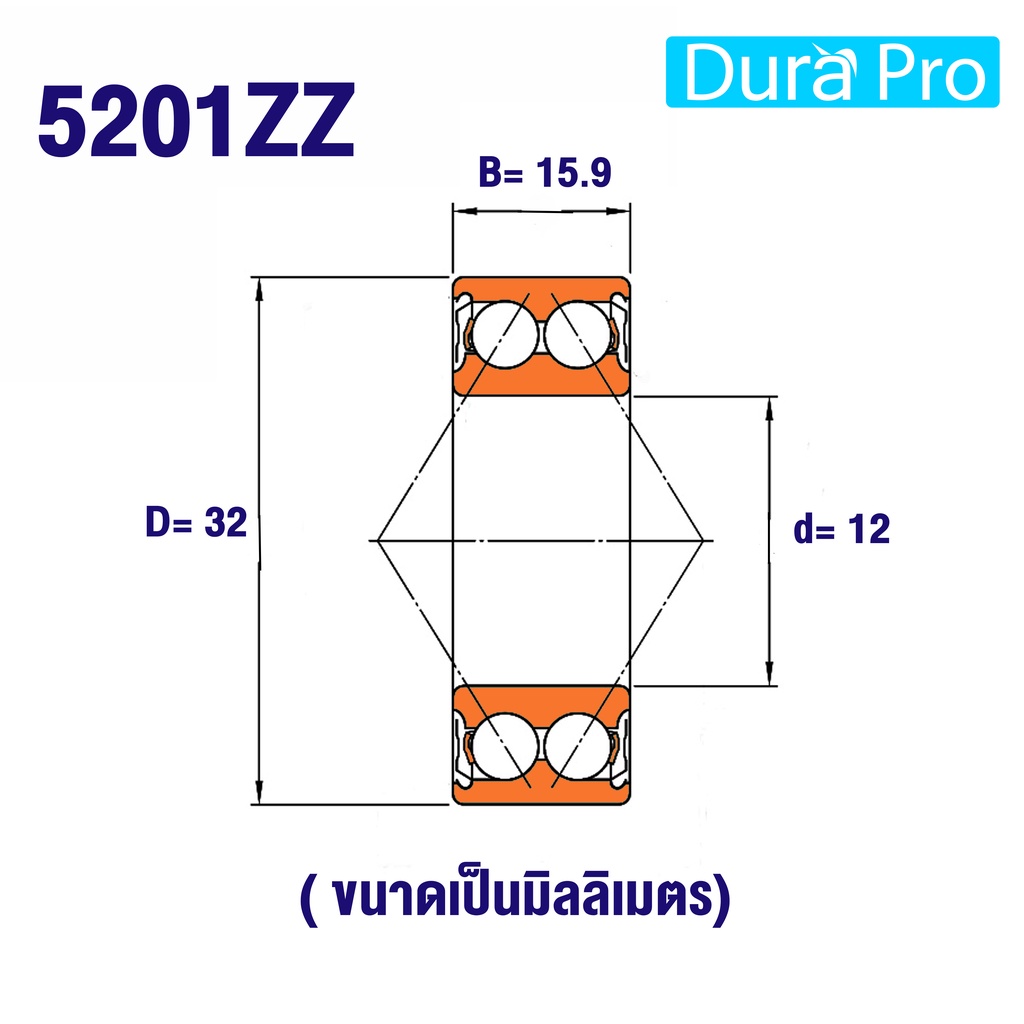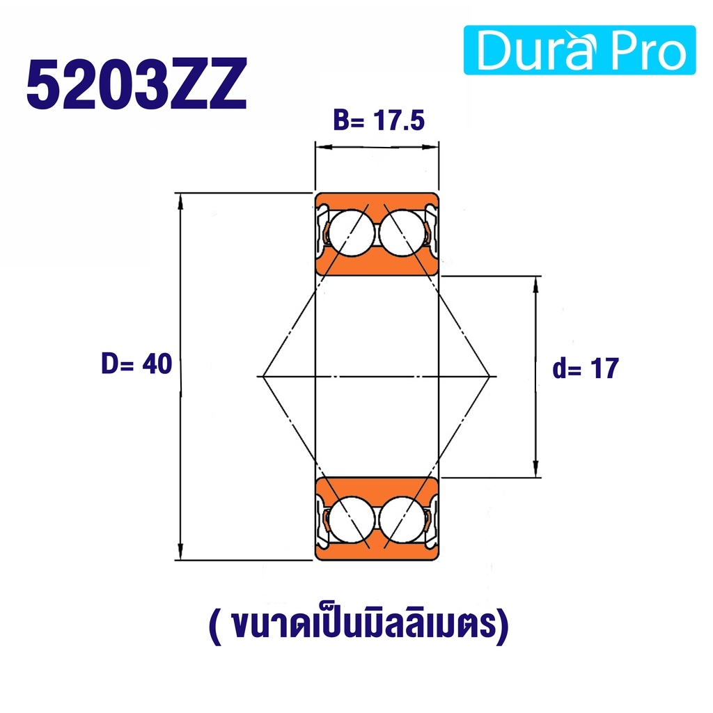 5200ZZ 5201ZZ 5202ZZ 5203ZZ 5204ZZ 5205ZZ ตลับลูกปืนเม็ดกลมสัมผัสเชิงมุม (Angular contact ball bearings) ฝาเหล็ก 2 ข้าง