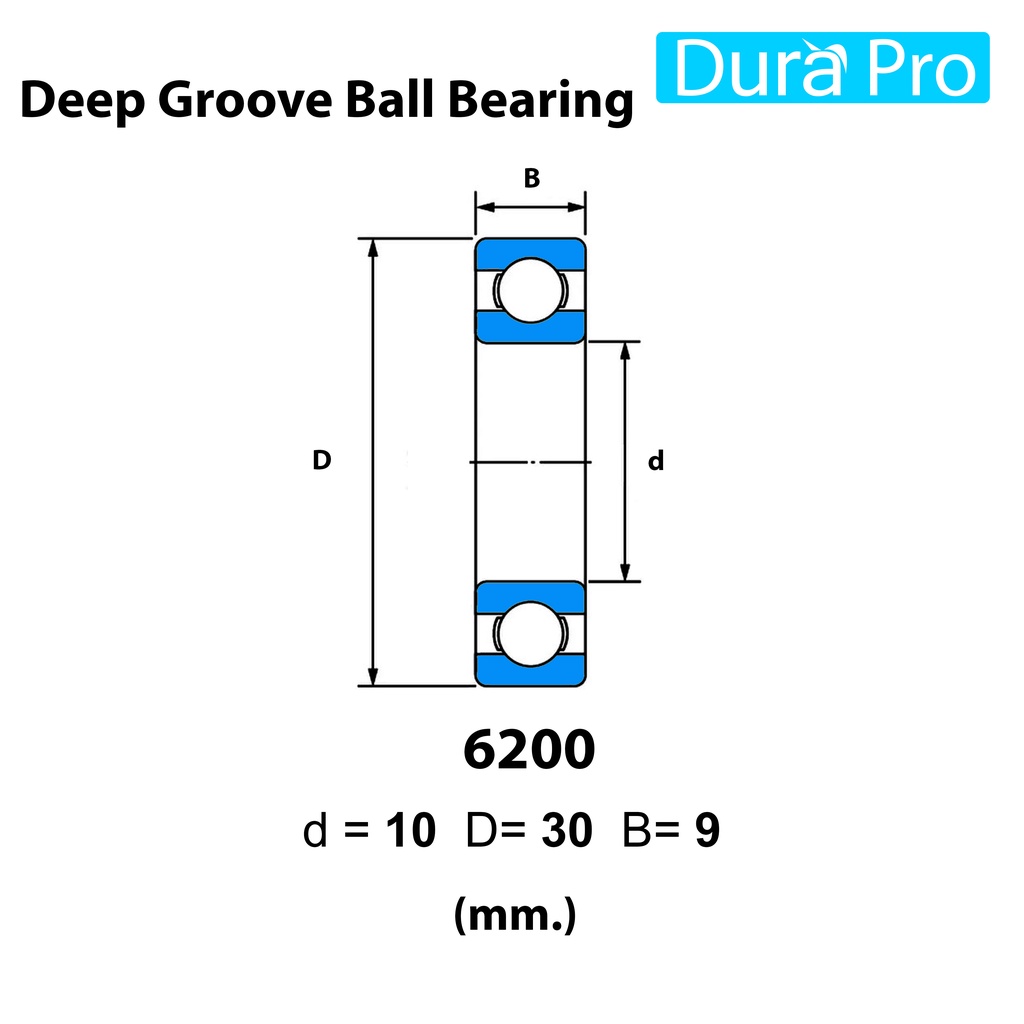 6200 6201 6202 6203 6204 6205 6206 ตลับลูกปืนเม็ดกลมร่องลึก ฝาเปิด FAG (Deep Groove Ball Bearing) โดย Dura Pro