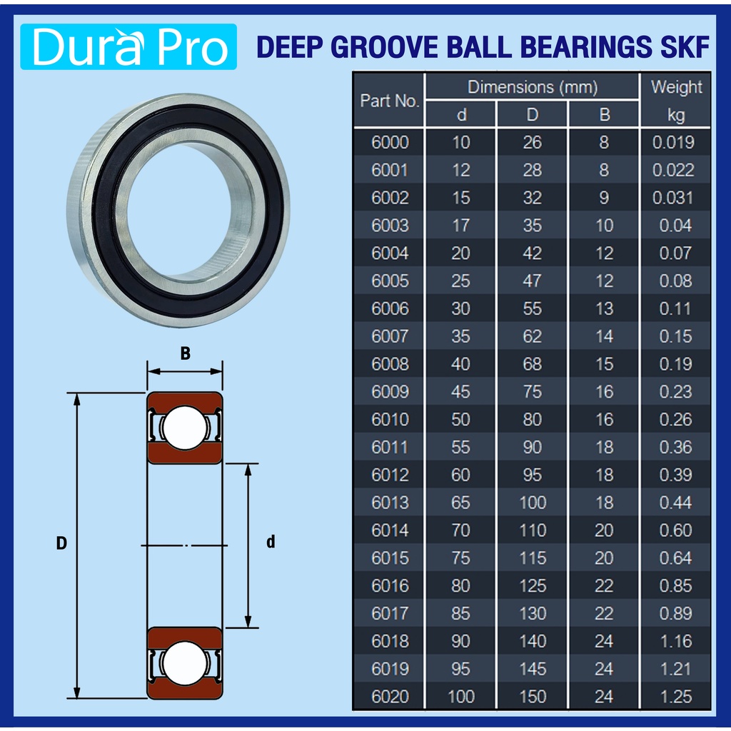 6006-2RS 6007-2RS 6008-2RS 6009-2RS 6010-2RS 6011-2RS 6012-2RS C3 SKF ตลับลูกปืนเม็ดกลมร่องลึก ฝายาง ( 2RS,2RSH,2RS1 )