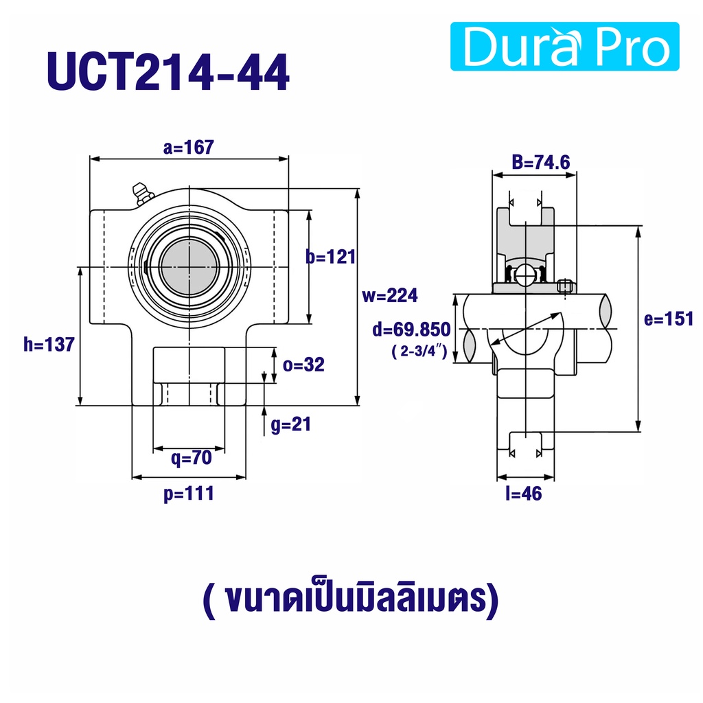 UCT214-44 UCT215-48 ตลับลูกปืนตุ๊กตา BEARING UNITS ตลับลูกปืนสำหรับเพลานิ้ว ( UC + T = UCT ) โดย Dura Pro