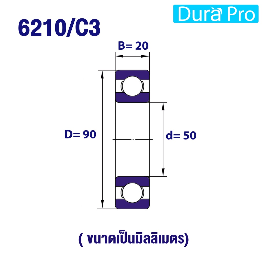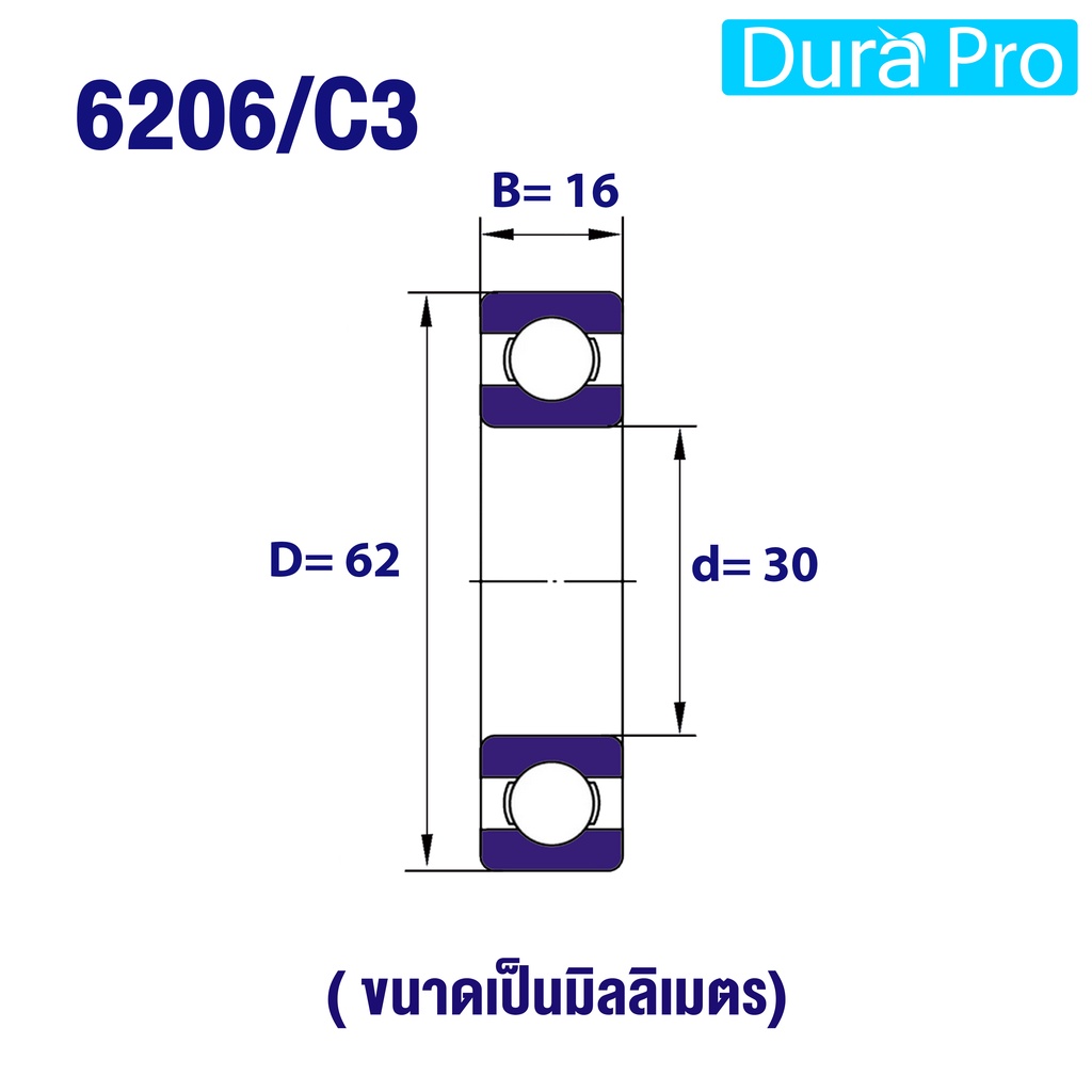 6206 6207 6208 6209 6210 6211 6212 C3 SKF ตลับลูกปืนเม็ดกลมร่องลึก รอบสูง ฝาเปิด OPEN โดย Dura Pro