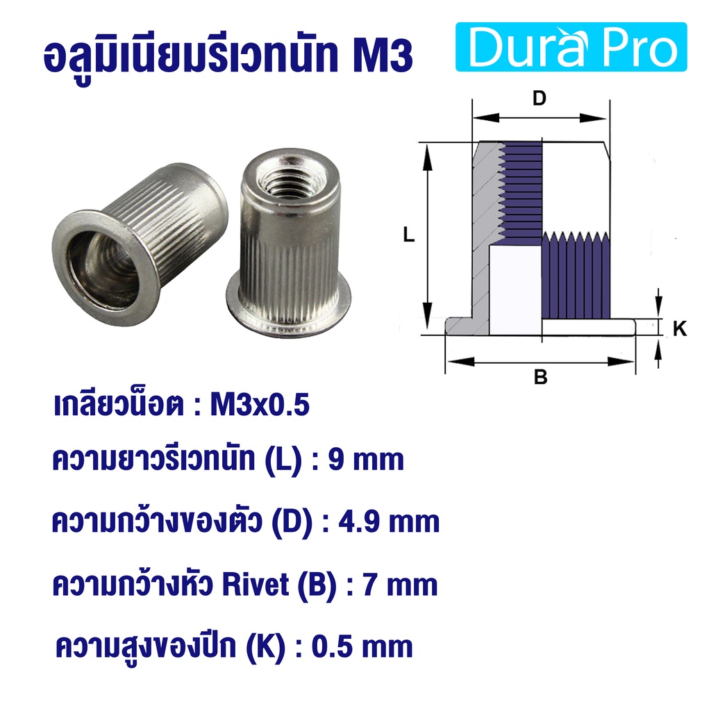 รีเวทนัท รีเวทนัทอลูมิเนียม รีเวทนัทเหล็กชุบซิ้งค์ รีเวทนัทสแตนเลส เบอร์ M3 RIVET NUT ลูกรีเวท ลูกรีเวทนัท น็อตรีเวท