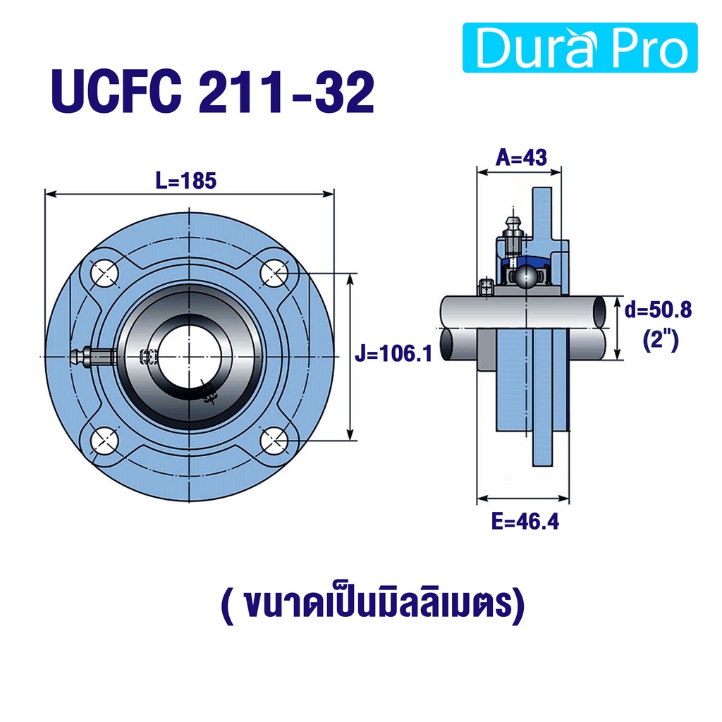 UCFC211-32 UCFC212-36 UCFC213-40 UCFC214-44 UCFC215-48 UCFC216-50 ตลับลูกปืนตุ๊กตา สำหรับเพลานิ้ว BEARING UNITS