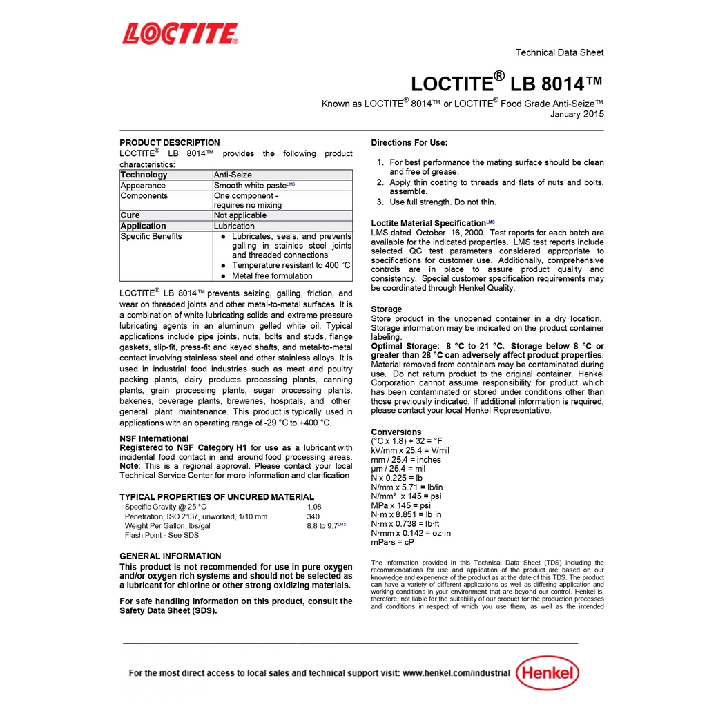 LOCTITE LB 8014 Food Grade Anti-Seize (ล็อคไทท์) สารหล่อลื่น สารหล่อลื่นป้องกันการติด ไม่มีส่วนผสมของโลหะ โดย Dura Pro
