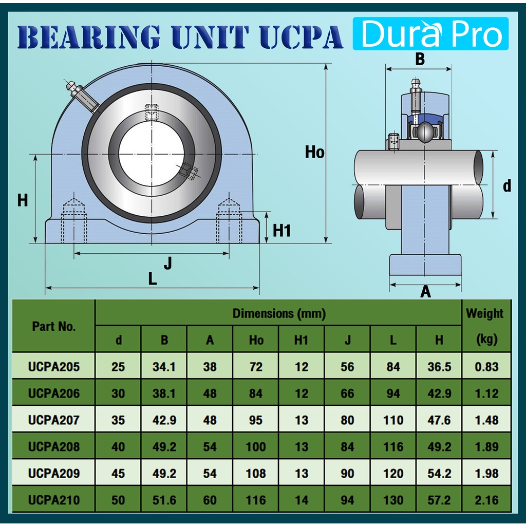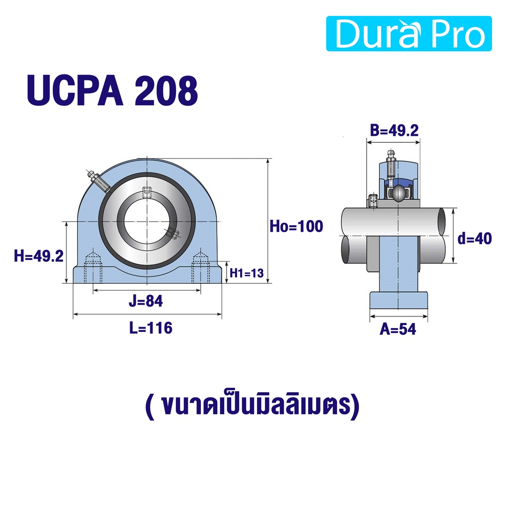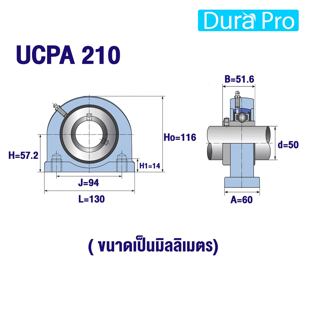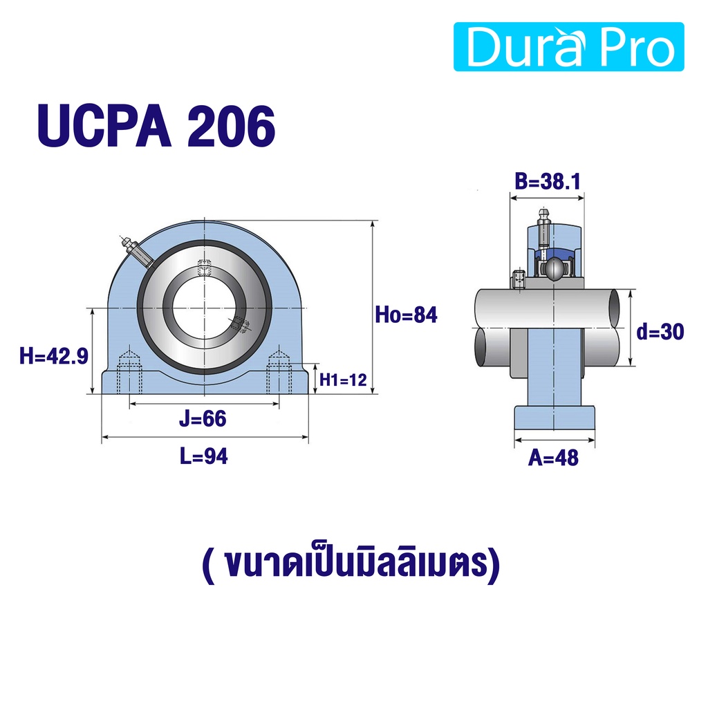 UCPA205 UCPA206 UCPA207 UCPA208 UCPA209 UCPA210 ตลับลูกปืนตุ๊กตา BEARING UNITS สำหรับเพลามิล โดย Dura Pro