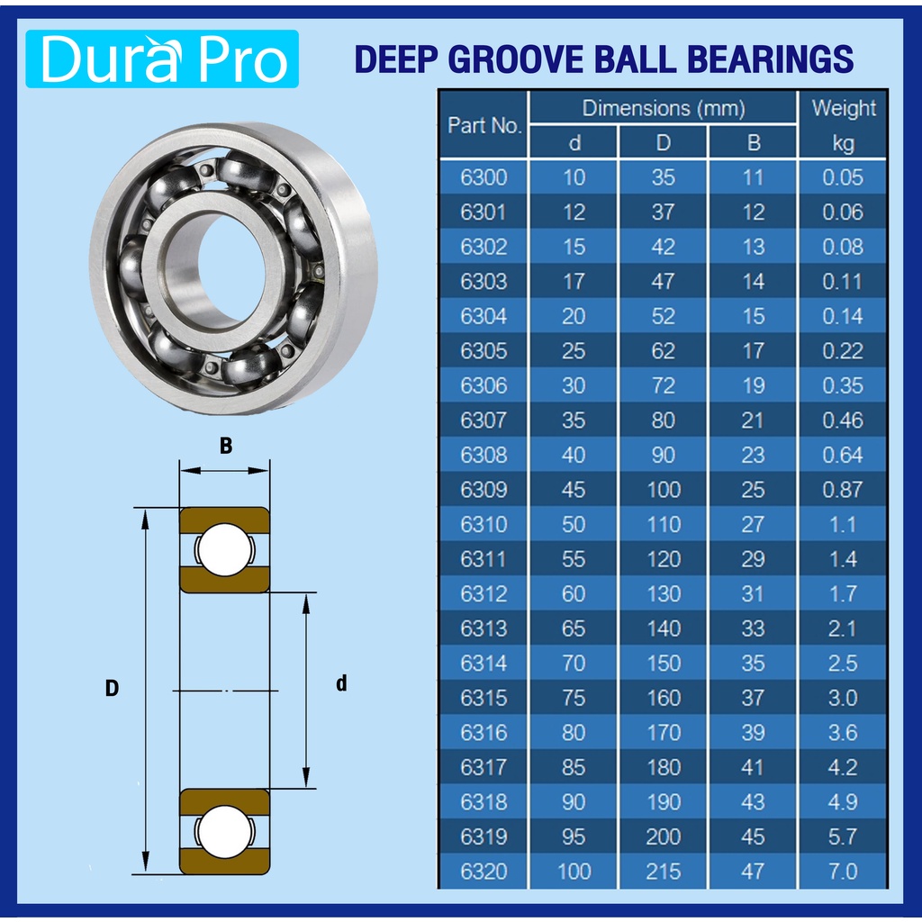 6300 6301 6302 6303 6304 6305 KOYO ตลับลูกปืนเม็ดกลมร่องลึก ฝาเปิด (Deep Groove Ball Bearing) โดย Dura Pro