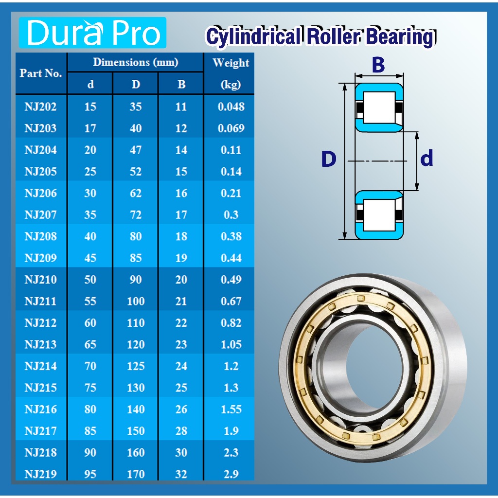 NJ208 NJ209 NJ210 NJ211 NJ212 NJ213 ตลับลูกปืนเม็ดทรงกระบอก ( Cylindrical Roller Bearings ) NJ 209 - NJ 213 N NJ NU NF