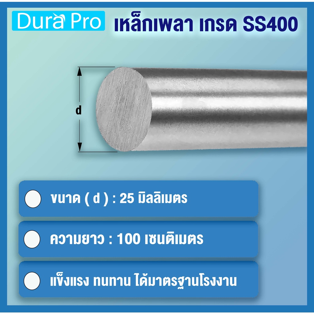 เพลามิล เพลาขนาด 25 มิล เหล็กเพลา เพลาขาวดิบ ( ความยาว 100 ซม ) เพลากลมตัน เพลา เหล็กเกรด SS400 โดย Dura Pro