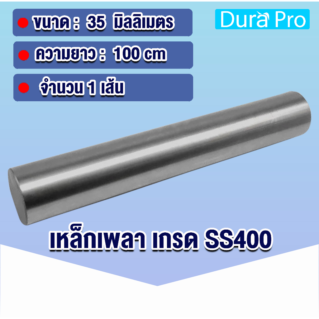 เพลามิล เพลาขนาด 35 มิล เหล็กเพลา เพลาขาวดิบ ( ความยาว 100 ซม ) เพลากลมตัน เพลา เหล็กเกรด SS400 โดย Dura Pro