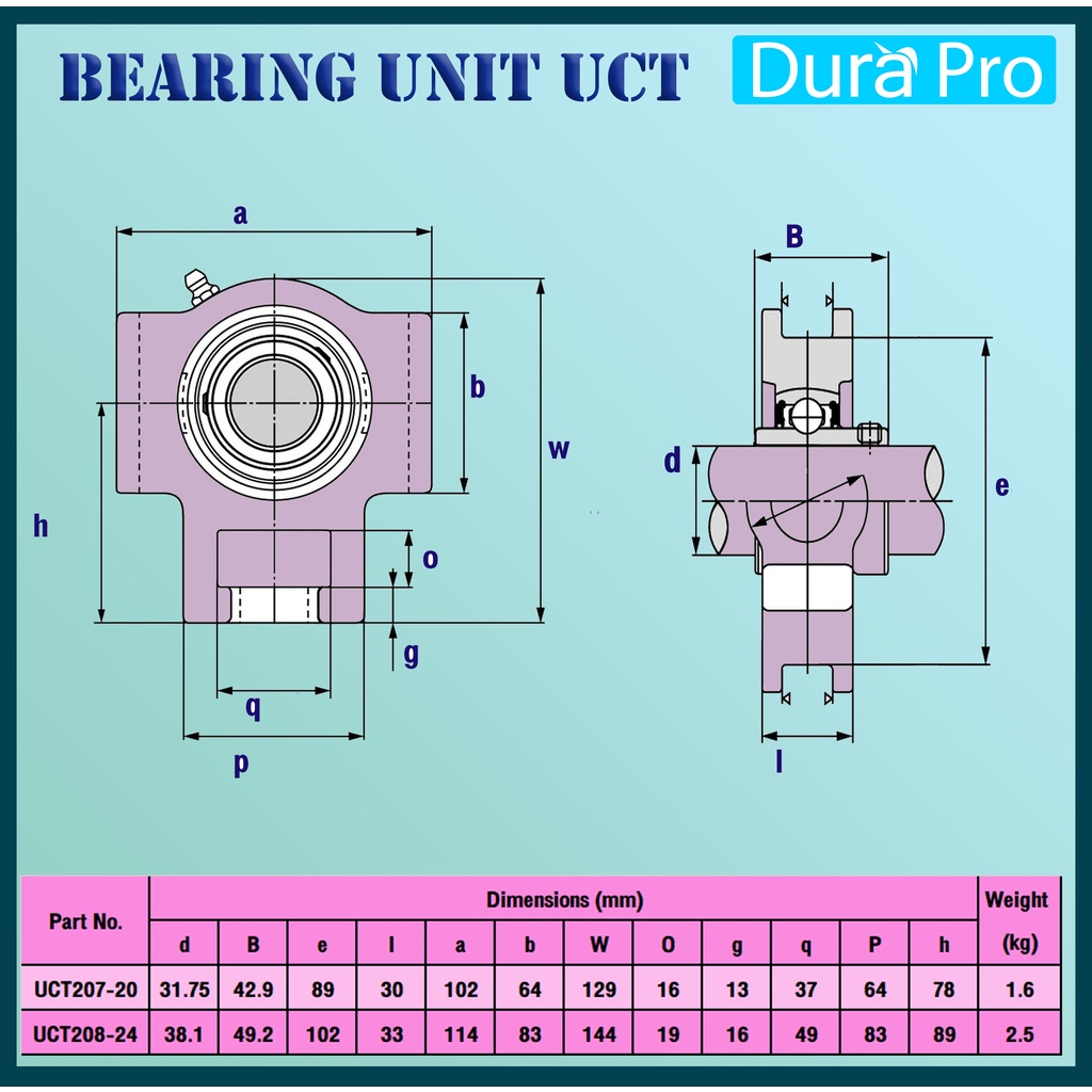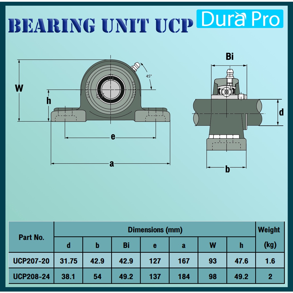ตลับลูกปืนตุ๊กตา Bearing Units ( UCP UCF UCFL UCT UCFC UCPA ) เบอร์ 207-20 208-24 สำหรับเพลานิ้ว โดย Dura Pro