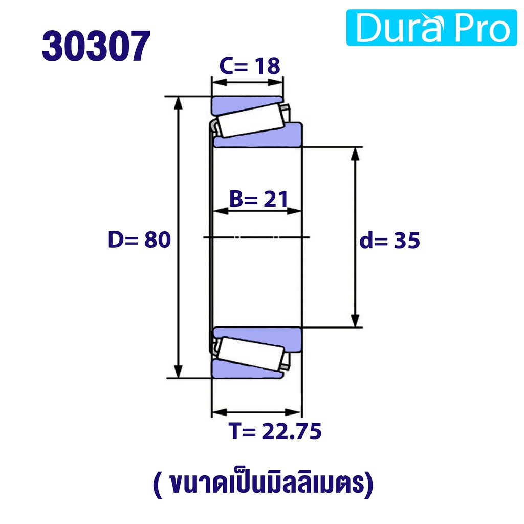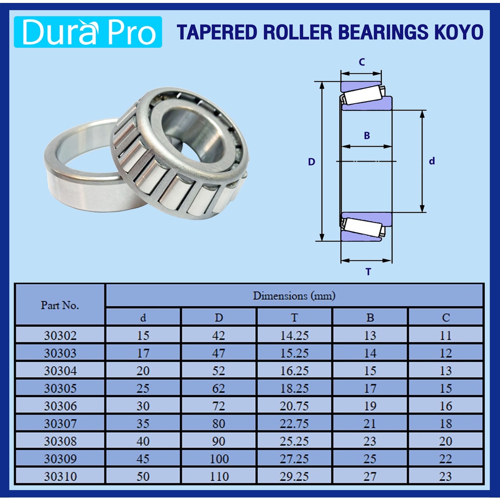 30306 30307 30308 30309 30310 KOYO ตลับลูกปืนเม็ดเรียว ตลับลูกปืนเตเปอร์ (TAPERED ROLLER BEARINGS) โดย Dura Pro