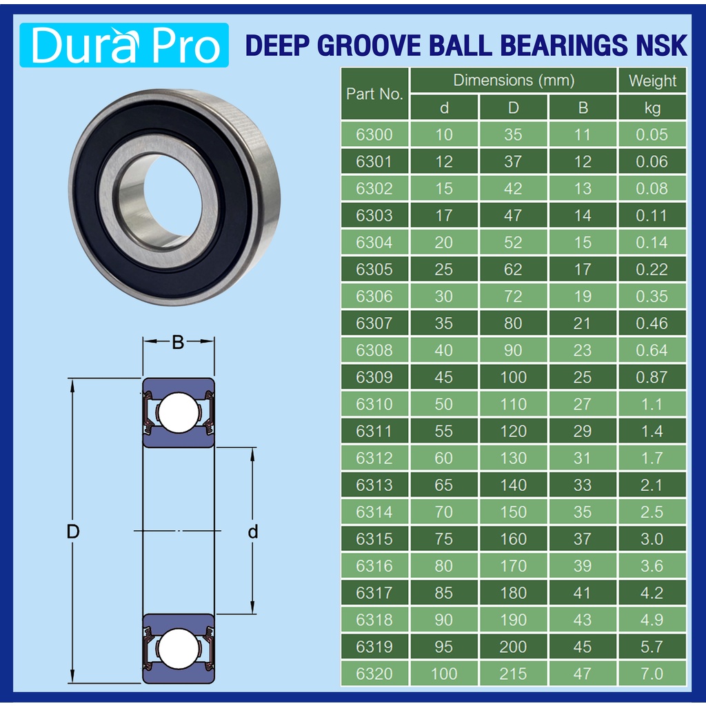 NSK 6300 6301 6302 6303 6304 6305 VV , DD , 2RS RS ตลับลูกปืนเม็ดกลมร่องลึก ฝายาง (DEEP GROOVE BALL BEARINGS NSK)