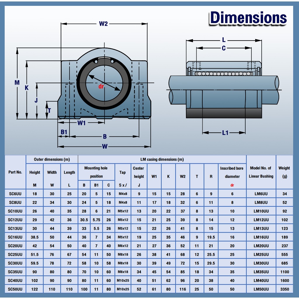 ลิเนียร์แบริ่งสไลด์ SC8UU SC10UU SC12UU SC13UU SC16UU SC20UU ( LINEAR BALL BUSHING ) บล็อกสไลด์ แบริ่งสไลด์ โดย Dura Pro