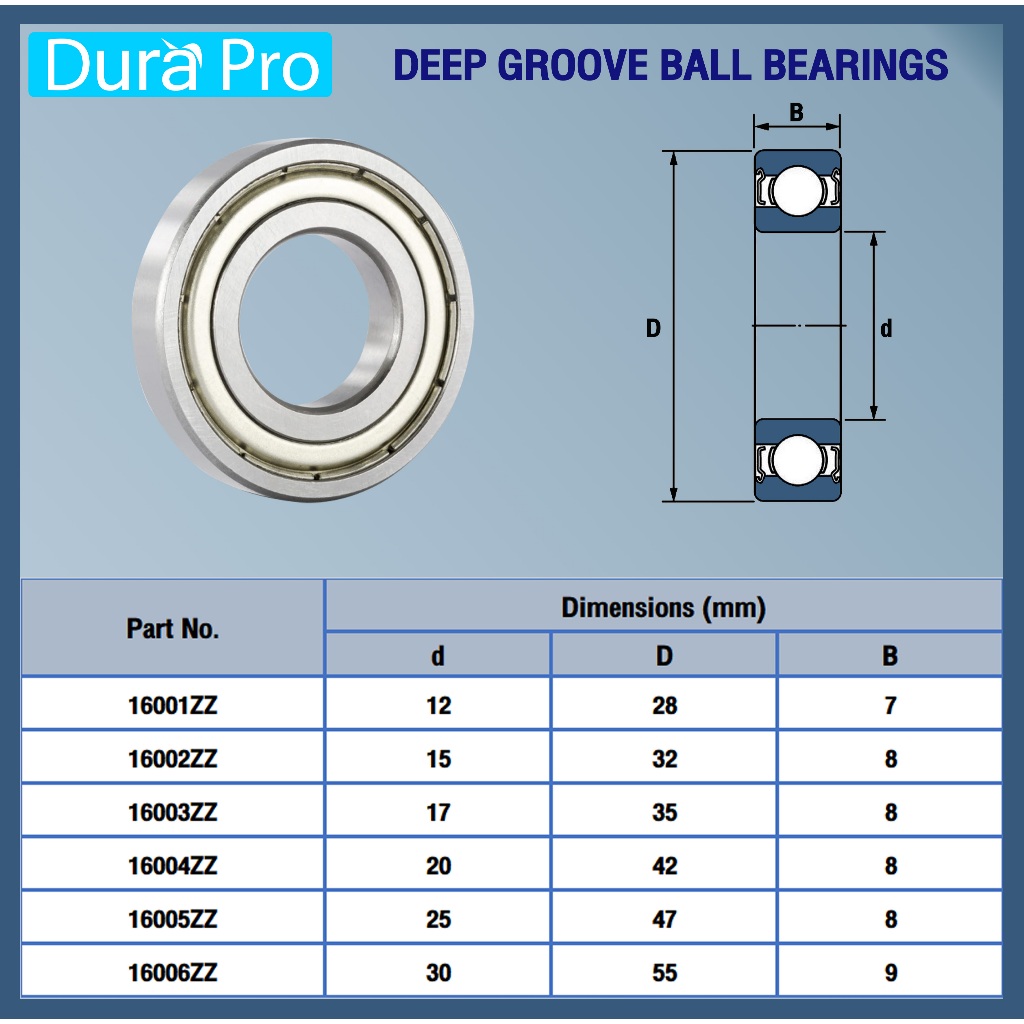 16001ZZ 16002ZZ 16003ZZ 16004ZZ 16005ZZ 16006ZZ ตลับลูกปืนเม็ดกลมร่องลึก ฝาเหล็ก 2 ข้าง ( DEEP GROOVE BALL BEARINGS )