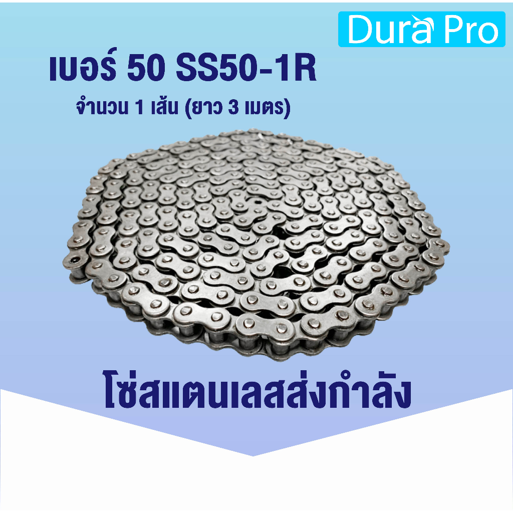 โซ่สแตนเลส โซ่ส่งกำลังสแตนเลส SS50-1R โซ่เดี่ยว โซ่ส่งกำลัง SS 50 เบอร์ 50 Transmission Roller chain (3 เมตร / 1 กล่อง)