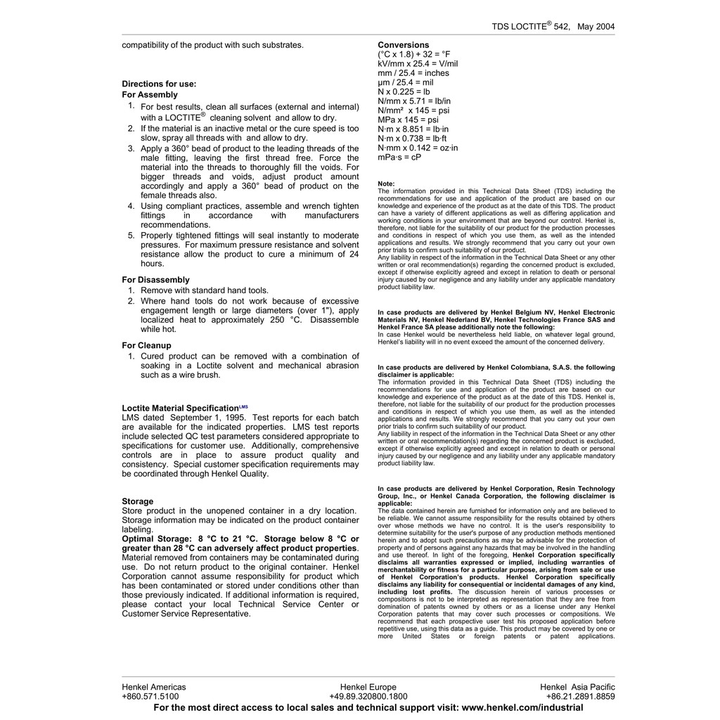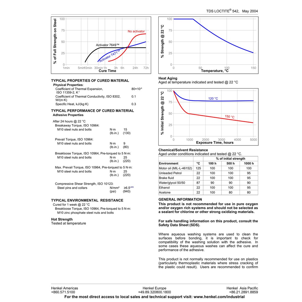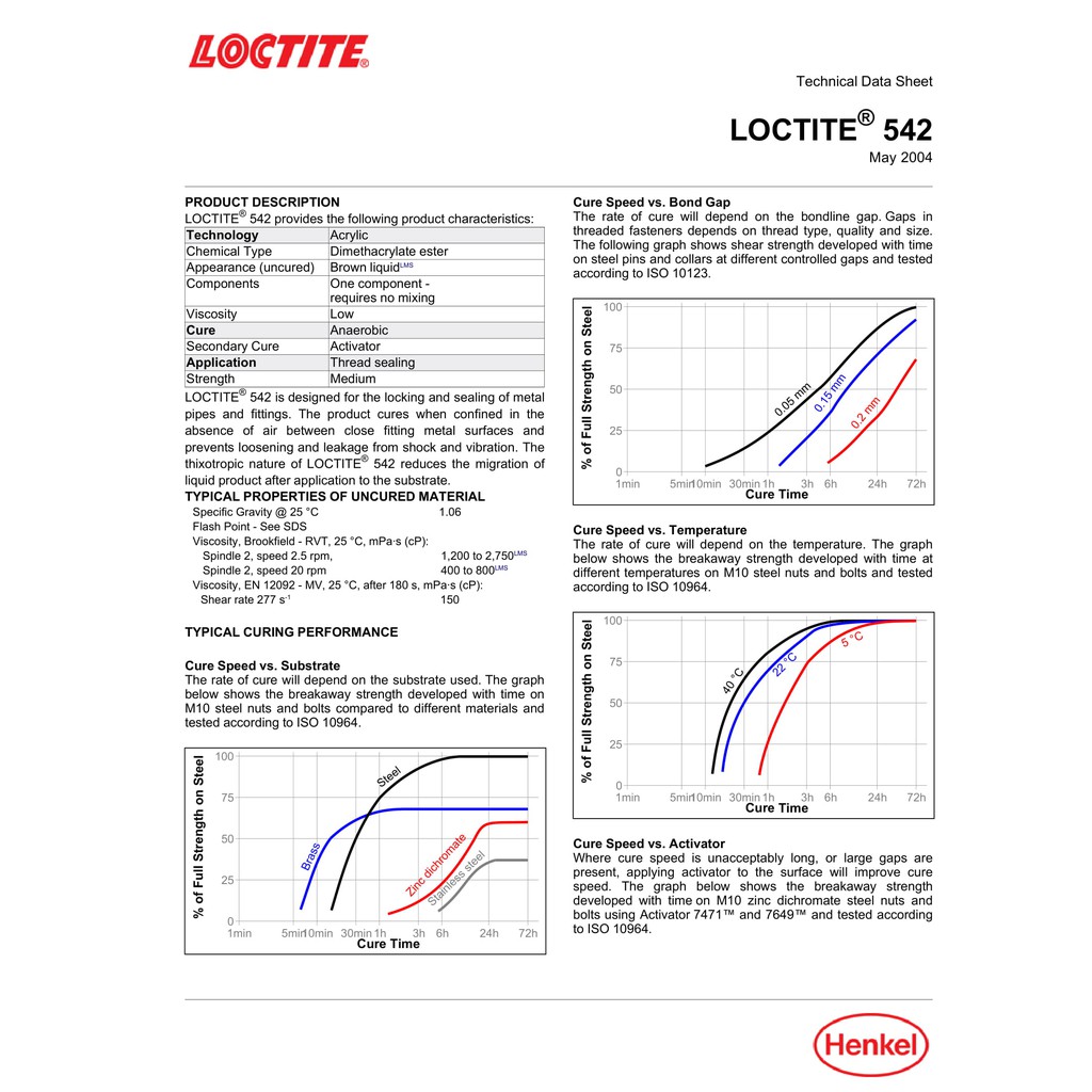LOCTITE 542 THREAD SEALANT ( ล็อคไทท์ ) น้ำยาซีลเกลียว 50 ml จัดจำหน่ายโดย Dura Pro