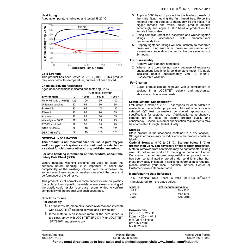 LOCTITE 567 PIPE SEALANT ( ล็อคไทท์ ) น้ำยาซีลเกลียวทนอุณหภูมิสูง 50 ml จัดจำหน่ายโดย Dura Pro