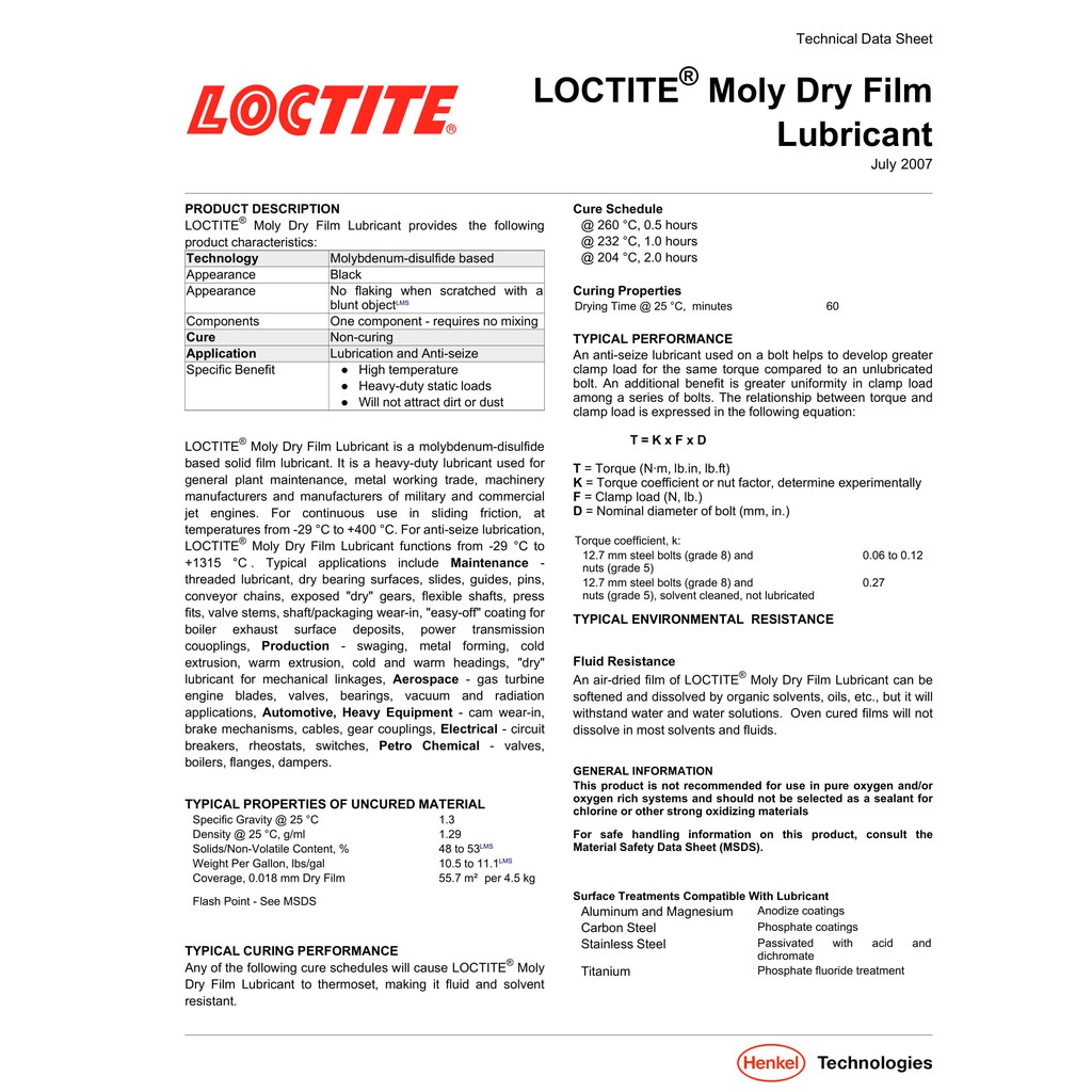 LOCTITE LB 8017 ( 39895-12 ) Moly Dry Film ( ล็อคไทท์ ) สารหล่อลื่อนประเภทชั้นฟิล์มแห้ง โดย Dura Pro