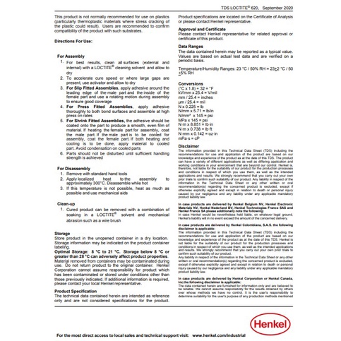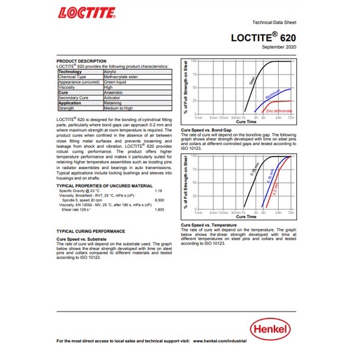LOCTITE 620 ( ล็อคไทท์ ) น้ำยาตรึงเพลา แรงยึดติดสูง ทนทานต่ออุณหภูมิสูง ขนาด 50 ml จัดจำหน่ายโดย Dura Pro