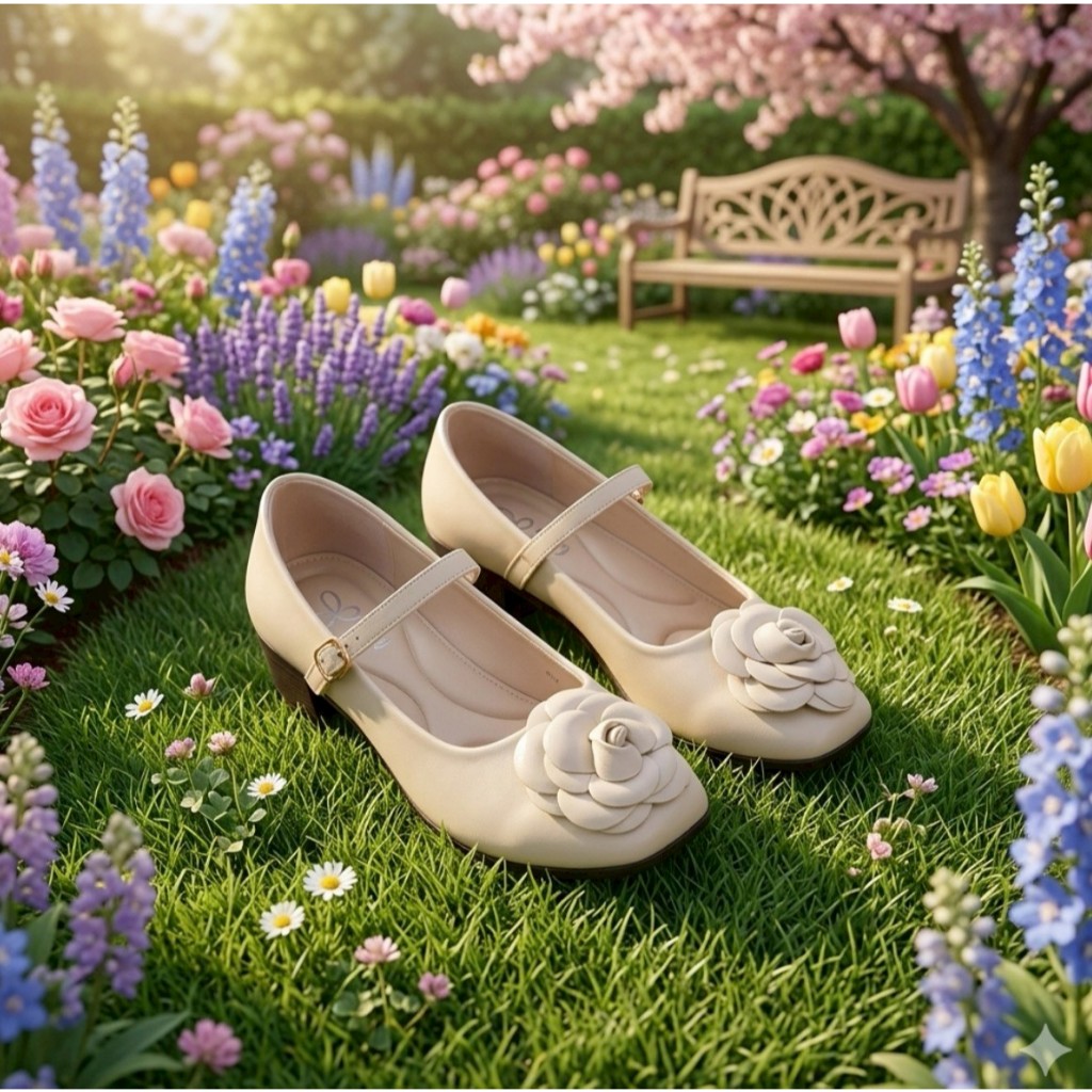 Adena รองเท้าส้นเตารีด ทรง MARY JANE พร้อมดอก Camiliaเท้าอวบเพิ่ม 1 ไซส์ สวย
