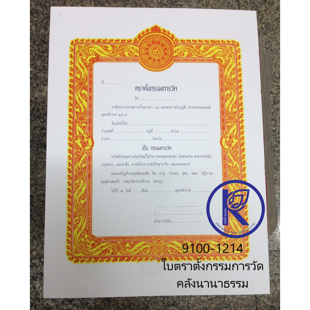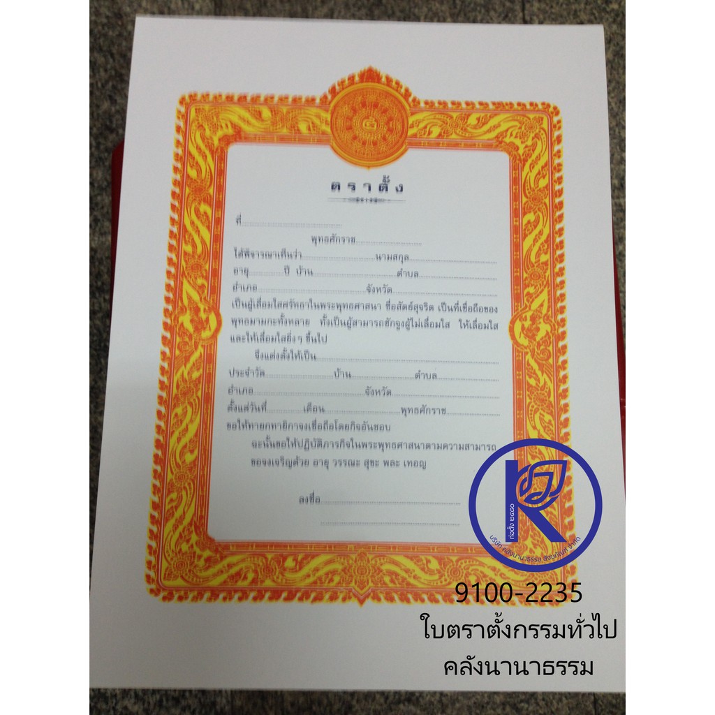 ✨ ใบตราตั้งเปล่า/ใบตราตั้งทั่วไป/ใบตราตั้งกรรมการวัด/ใบตราตั้งไวยาวัจกร (2) | คลังนานาธรรม สังฆภัณฑ์